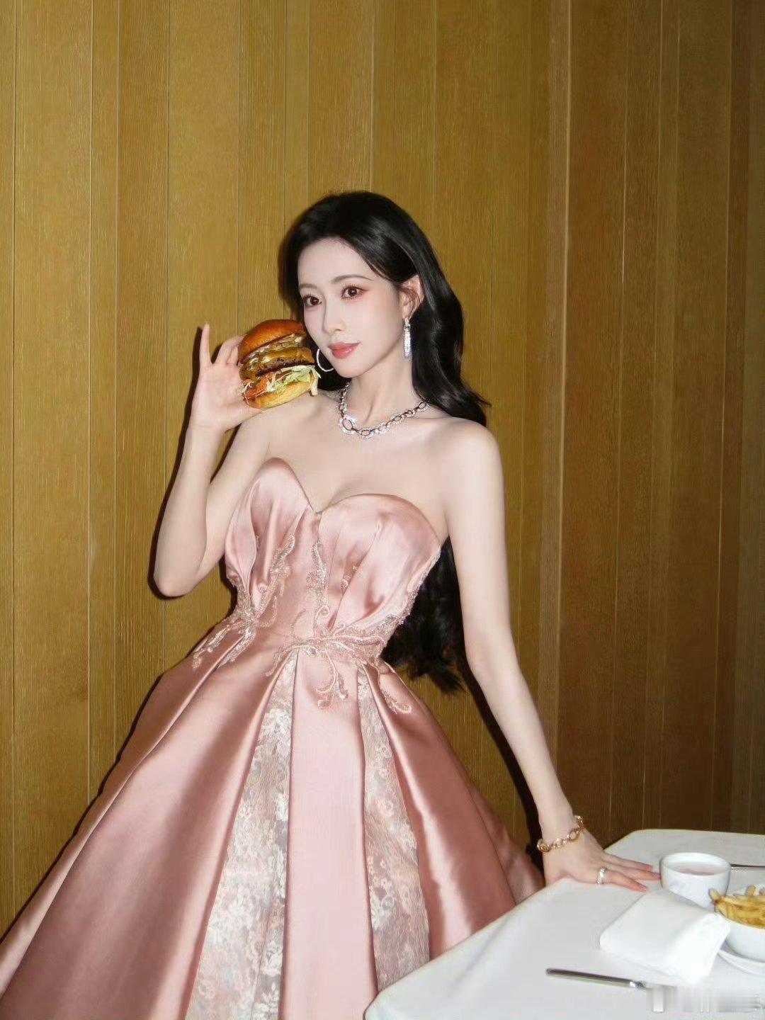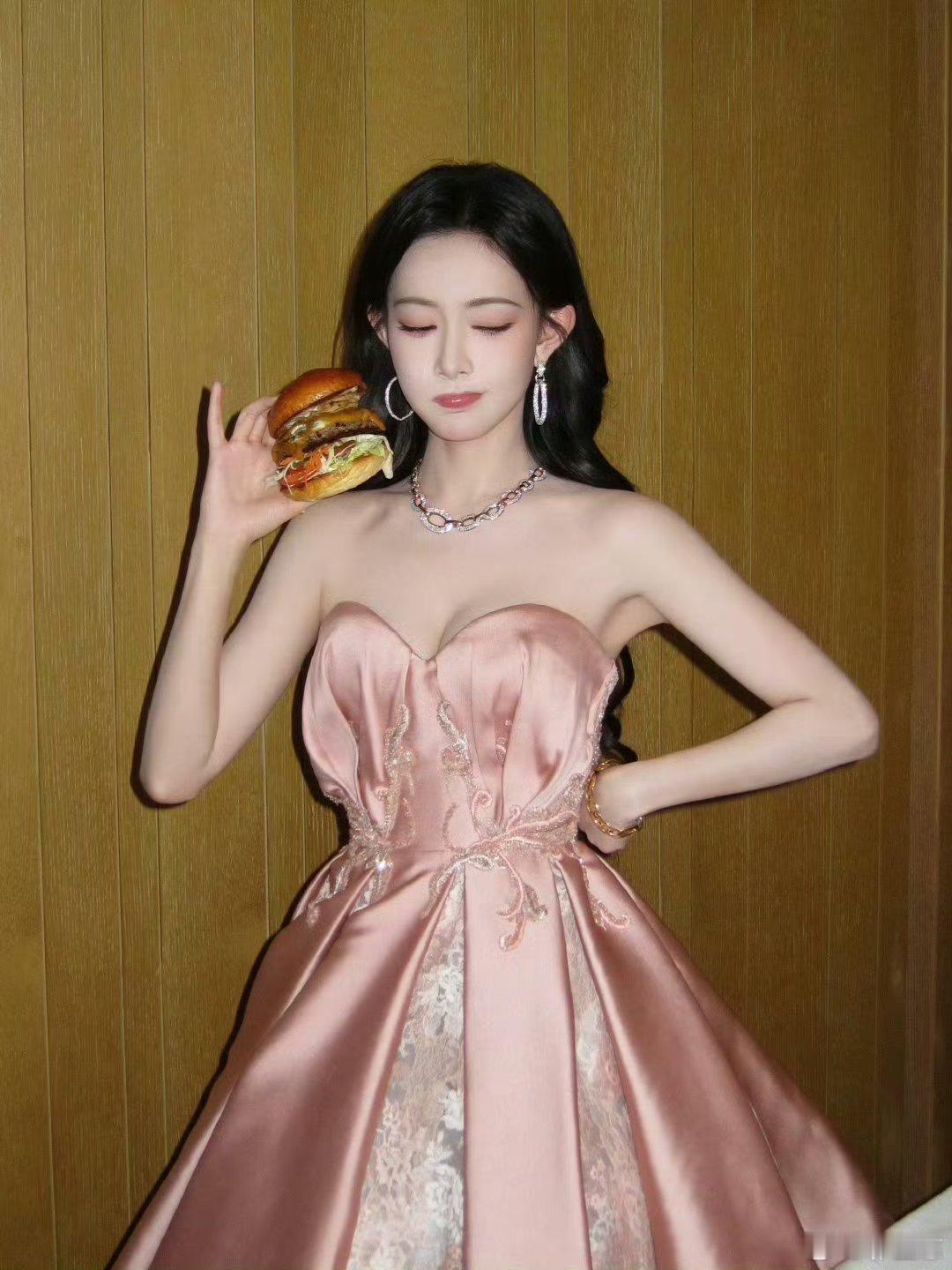 孟子义微博之夜粉色抹胸公主裙完全是甜心芭比好想看姐姐跳舞