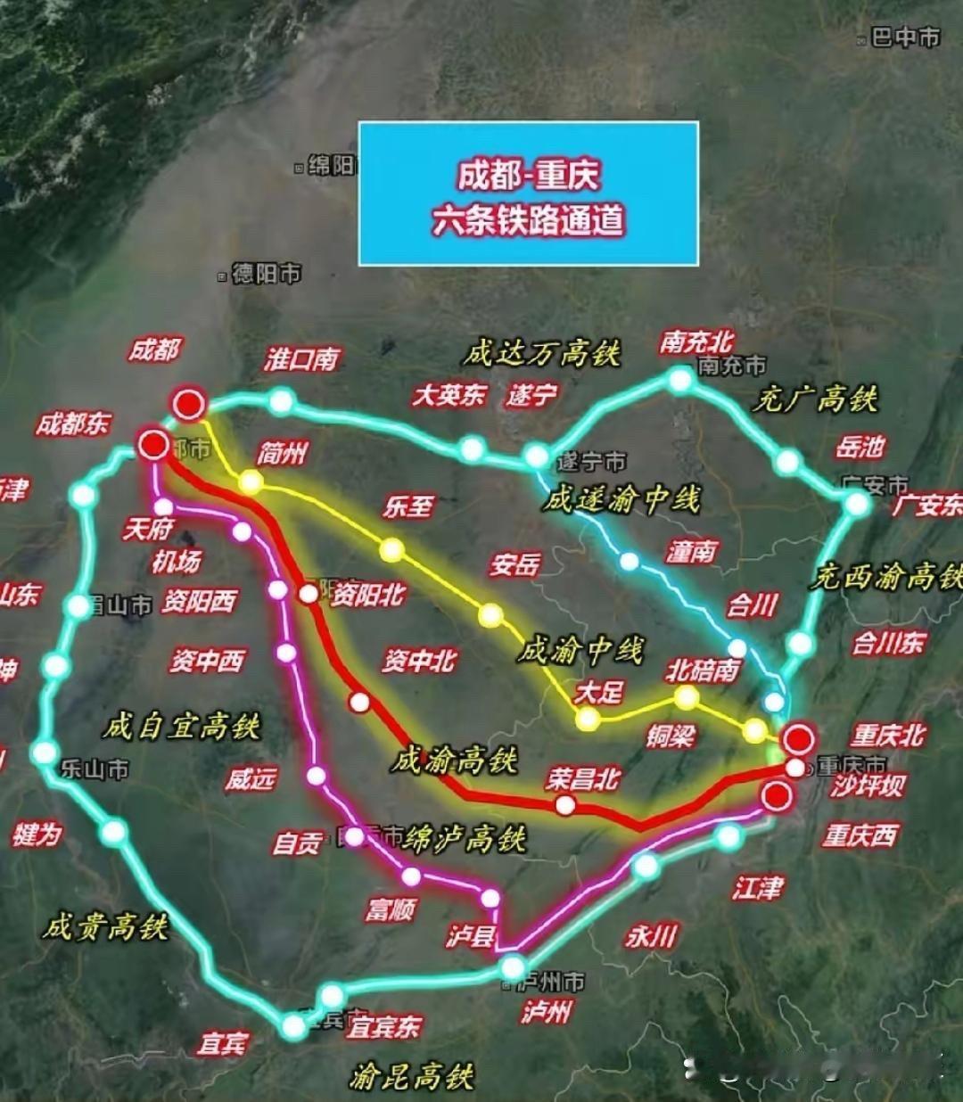 重庆、成都也太牛了吧!两大核心城市之间,已构建起6条铁路通道的密集交通网络!第一