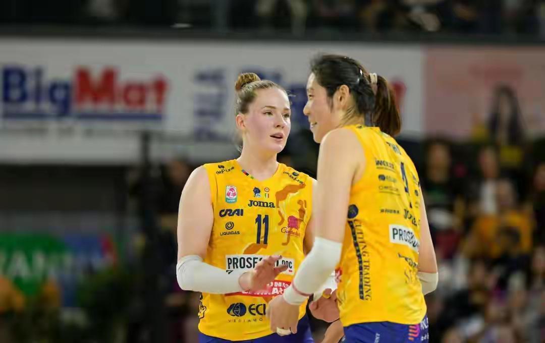 意甲女排联赛第二十三轮,科内利亚诺女排3:0斯坎迪奇女排(43:41/25:20/25:22)再取3分,领跑积分榜,基本提前锁定联赛冠军和下个赛季的欧冠资格。 朱婷首发,三局30扣14中,3个拦网得分,共计17分,全队第二高分。朱婷依旧是关键分女王,第一局局末拦死安娃,第二局局末吊球拿下局点,第三局爆扣再拿塞点!接全队最多的一传,防守准确,不愧最高自由人美誉!