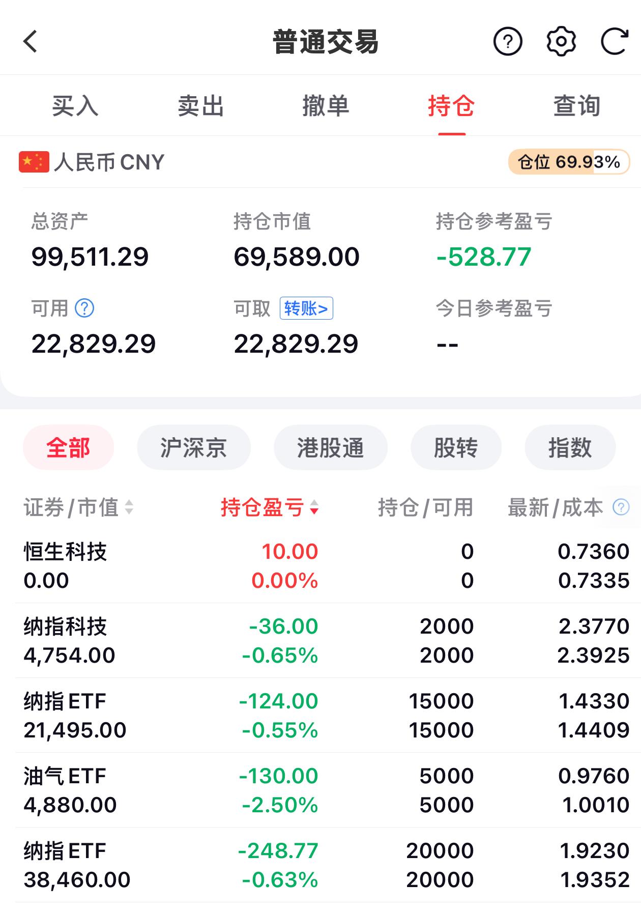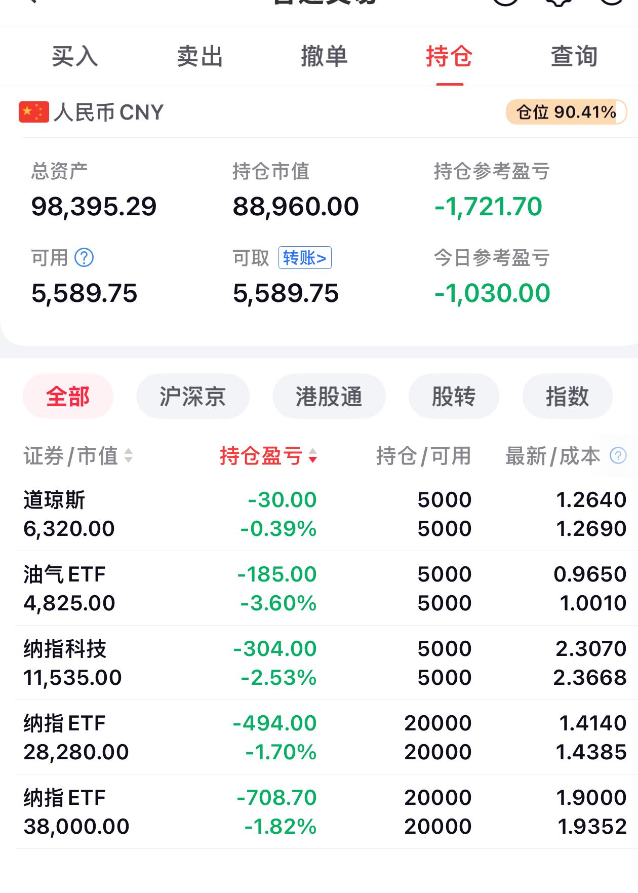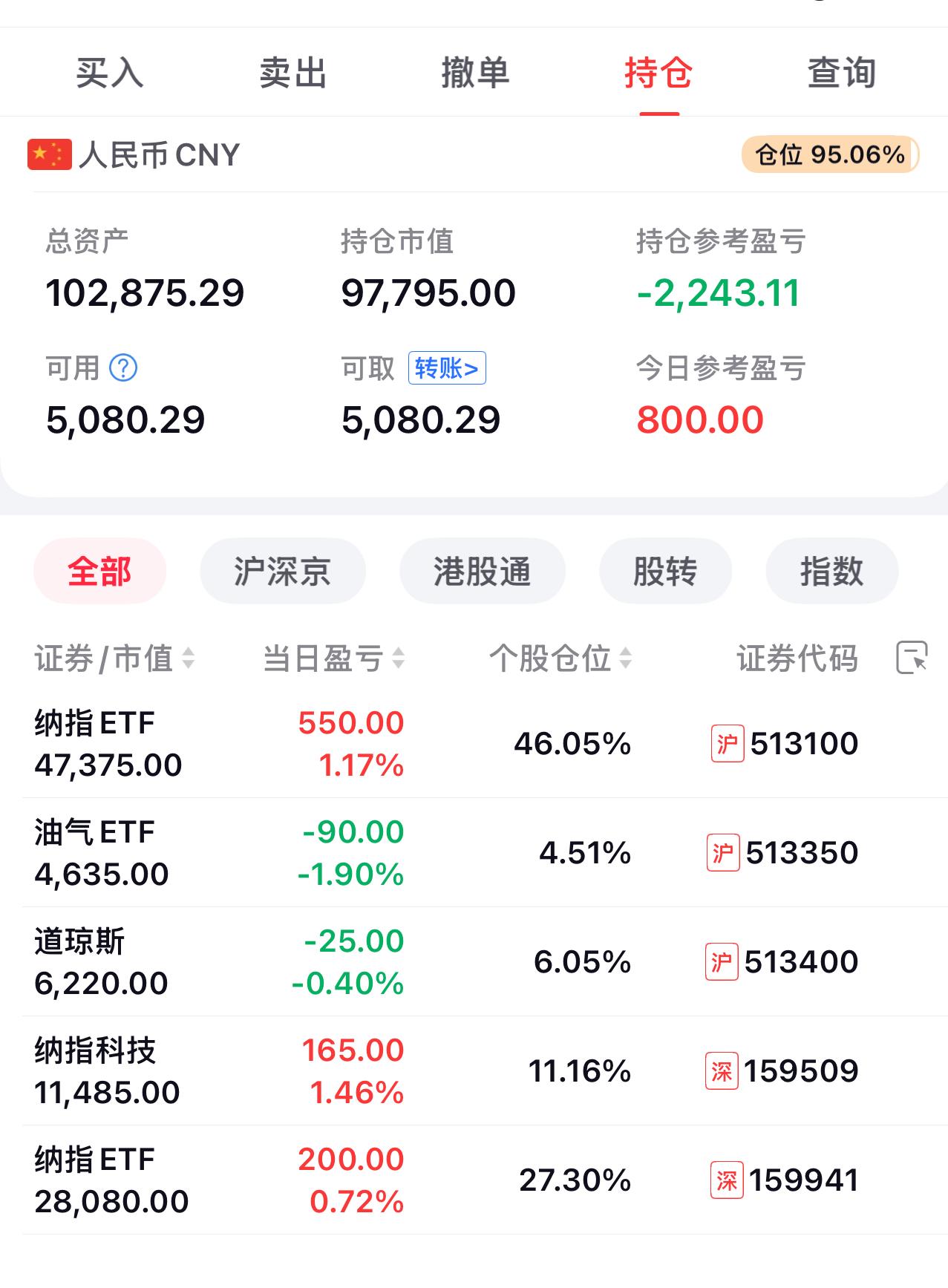 美股这段时间,一言难尽! 很多次机会,亏到几百块的时候,亏到一两千的时候,都是减仓的好时候。 没动,要等圣诞红包,结果…… 最多的时候,亏到5000多。 道指割了,标普割了,纳指亏的太多不敢割,硬扛! 特别是纳指科技,到现在还亏10个点,溢价20%,不知道何时回本。 今天总算回了一点血,以后如何,不好说。 老特的嘴,刚刚上涨,就号称要上10万点,才哪儿跟哪儿哦! 炒股这事,小本钱搞耍可以,不能当事情做。 特别是美股,经常过山车一般,大起大落,相当刺激,得有个大心脏才行。