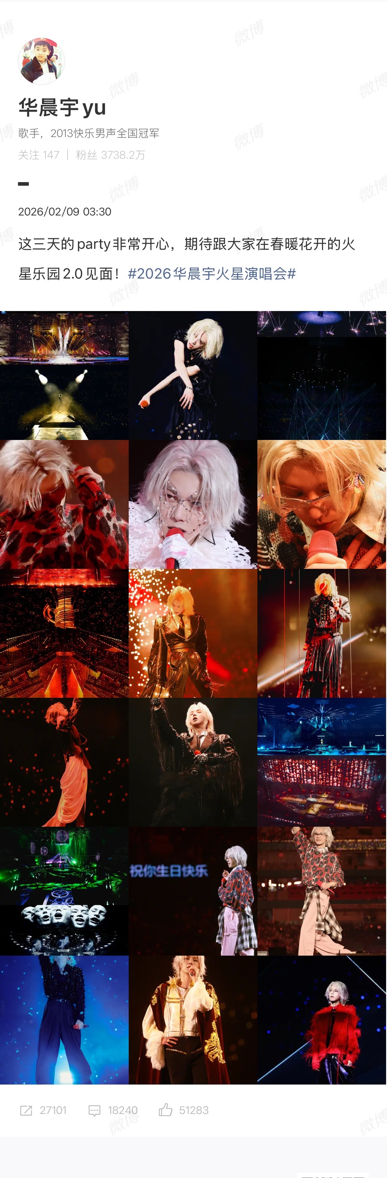 华晨宇发文回应拿下三块地这三天的party非常开心期待跟大家在春暖花开的火星乐园