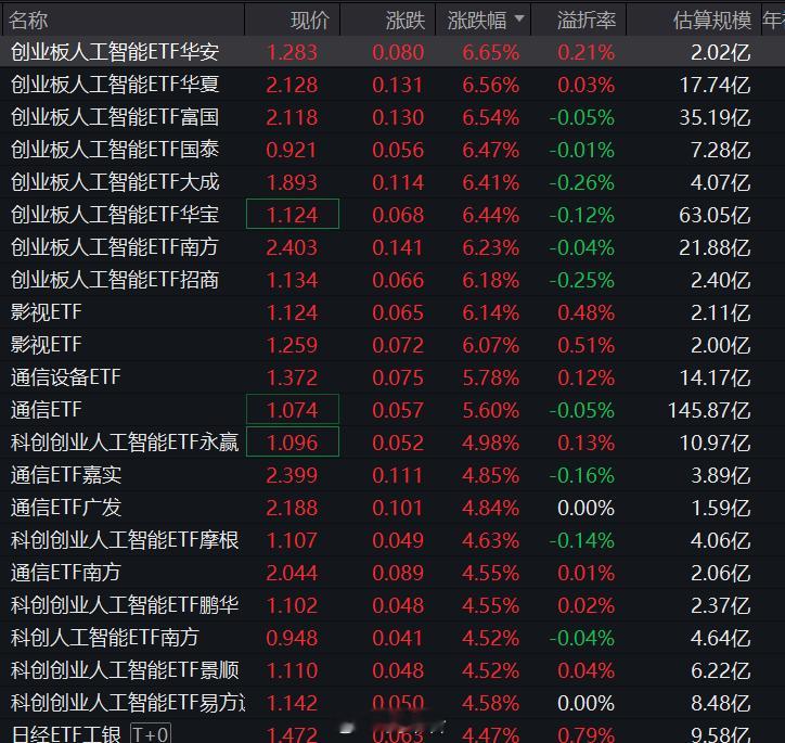 今日ETF涨幅榜上,创业板人工智能,科创板人工智能几乎霸榜,