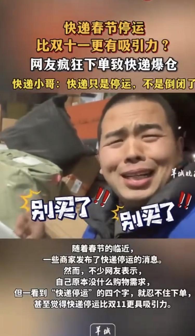 节前快递爆仓!网友疯囤年货,包裹堆成山,配送员连轴转太拼了🔥 救命!离2026马年春节越来越近,全网都在疯狂下单囤货,直接把快递逼到爆仓😭 打开社交平台全是同款吐槽:下单时有多爽,等快递时就有多慌!快递柜早被塞得满满当当,网点里包裹堆成小山,分拣员手忙脚乱,配送员连轴转连吃饭都挤不出时间。 罪魁祸首就是大家的“囤货焦虑”!加上社交平台疯传的“快递停运倒计时”谣言,还有商家节前最后一波促销、直播间催单,母婴用品、年货礼盒、新衣美妆订单暴增,部分网点单日件量暴涨50%+。 一边是网友急着收年货备过年,一边是快递员顶着人力缺口加班加点,跨省时效也从1-2天拉长到3-5天。 提醒大家:节前下单要趁早,多给快递小哥一点耐心~ 你们的包裹收到了吗?评论区说说你囤了啥年货👇