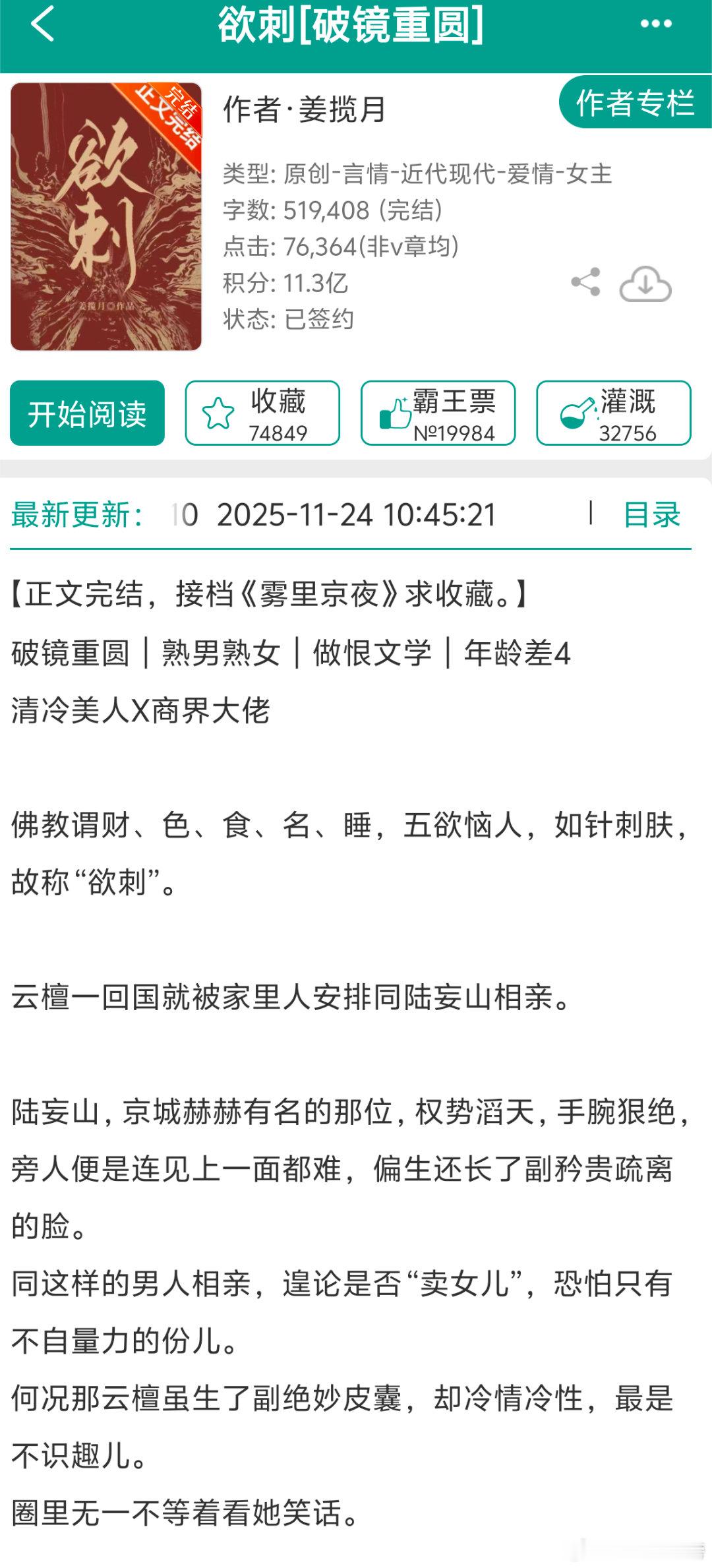 新一期的版权强推来啦!看了一下前面几本设定还不错,最后一本不懂卖点在哪,晋江这种文没有个几百本吗?数据也不是最好的,看过的可以说说是不是有什么文案没写出来的点