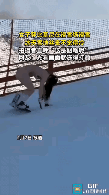 不懂就问,请问为什么这么冷的天气,这么年轻漂亮的女孩,要几乎全裸,穿着比基尼滑雪呢? 旁边还有人穿着羽绒服抱着女孩的全身衣服看热闹?为了拍视频有必要这么拼吗? 现在的自媒体为了吸引流量,这些年轻人也真是拼了! 趁年轻,要多奔放有多奔放! 只不过到了年纪,肯定会得老寒腿!
