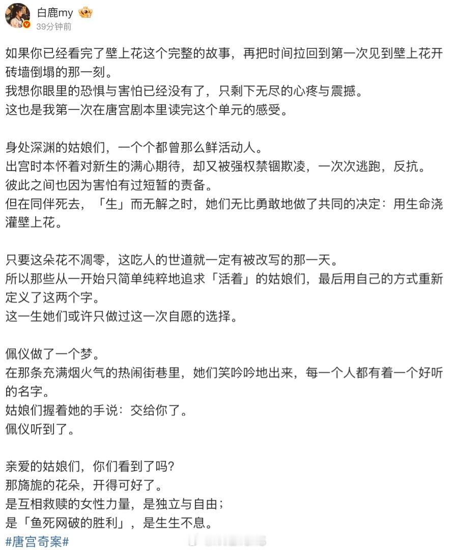 白鹿李佩仪小作文来了!白鹿发长文谈壁上花这个完整的故事了……白鹿长文谈壁上花 唐宫奇案第10集32分40秒