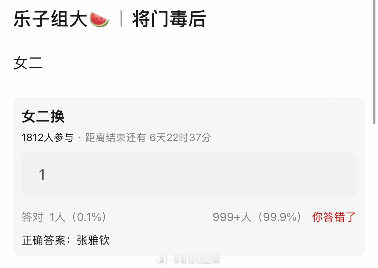 吃到🍉将门毒后女二由网传的郑合惠子换成张雅钦了