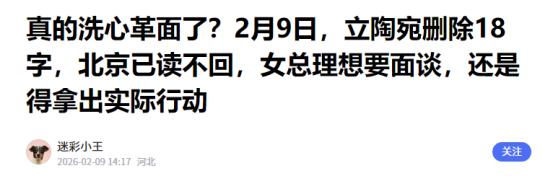 真的洗心革面了?立陶宛删除18字,北京已读不回,女总理想要面谈   最近欧洲小国立陶宛频频对华示好,又是删文件里的不当表述,又是总理公开认错,还想着要和中国面谈。不少人纳闷,这个之前跟中国闹得很僵的国家,难道真的洗心革面了?中立两国的关系,到底能不能修复回来?其实答案很简单,关键就看立陶宛能不能实打实做对一件事。   要说清楚这事,得先回头看看几年前发生了什么。2021 年,立陶宛不顾中国多次警告,允许台湾地区在他们首都设立了所谓 “台湾代表处”。   要知道,世界上只有一个中国,台湾是中国的一部分,这是国际社会公认的事实,也是中国和其他国家建交的基本前提。其他欧洲国家即便有类似机构,用的都是 “台北” 的名称,唯独立陶宛非要标新立异用 “台湾”,这明摆着是触碰中国的核心利益。   中方的反应很坚决,直接把两国外交关系降到了代办级,还撤回了驻立陶宛的大使。到 2025 年 5 月,最后一批中国外交人员也离开了,现在立陶宛连个直接对接中国的外交官都没有,民众办赴华签证得跑到拉脱维亚,企业想跟中国合作都找不到直接联系的渠道。   经济上的损失更实实在在,立陶宛的木材、乳制品、激光设备这些支柱产业,对华出口暴跌,2025 年前 10 个月的出口量比 2021 年同期少了一半还多,有的时候跌幅甚至高达九成。   他们本来指望美国和欧盟能帮衬一把,结果欧盟 2025 年底就撤回了针对中国的相关诉讼,美国也只给了几句口头表扬,没什么实际好处,立陶宛算是彻底尝到了苦果。   直到 2025 年 9 月新总理鲁吉尼埃内上台,情况才出现变化。这位女总理一上任,就把修复对华关系当成了重要任务。她首先做的,就是把前任政府文件里 “中国构成日益增长的外交政策与安全风险” 这 18 个字给删了,这等于是不再官方抹黑中国了。   接着在 2026 年 2 月,她公开承认当年在台湾问题上的做法是战略错误,说那种行为让立陶宛自己受了大损失。她还提到,其他欧洲国家都能和中国保持正常合作,唯独立陶宛当初非要单独行动,结果没人赞赏,反而害了自己。   按说做了这些表态,也该有后续进展了,但中方一直没给出积极回应,就像 “已读不回” 一样。这不是中国故意刁难,而是立陶宛的示好里还有不少让人不放心的地方。   首先是他们国内态度不一致,总理忙着认错求和,总统瑙塞达却在同一天说,修复关系需要中国先 “拿出诚意”,还炒作跟中国走得太近有风险。更让人不解的是,就在总理认错前不久,立陶宛国会还有议员跑去了台湾,一边说要修复对华关系,一边还在触碰中国底线。   其实中方的态度一直很明确,外交部发言人早就说过,沟通的大门始终敞开,但关键是立陶宛要把改善关系的意愿变成实际行动。什么是实际行动?不是删几个字、说几句软话就行的。   当初的核心问题是那个所谓的 “台湾代表处”,现在这个机构还在立陶宛运作,名字也没改,这就是最实际的问题。中国在意的不是口头道歉,而是立陶宛能不能真正回到一个中国原则的正确轨道上,撤销这个违规的代表处,不再和台湾进行任何官方层面的往来。   立陶宛现在急着修复关系,本质上是经济压力逼得没办法了。他们的 GDP 增速没达到预期,很多企业因为失去中国市场陷入困境,国内超过六成的民众都支持政府改善对华关系。   但光有压力不够,得有真诚意。中国是个记性很好的国家,当初挪威因为相关问题,花了八年才修复对华关系,立陶宛要是只做表面功夫,肯定行不通。   现在全世界都在忙着和中国合作,英国、芬兰、加拿大这些国家都从合作中拿到了实实在在的好处。立陶宛要是真想来谈,就得先把该做的事做好。   撤销那个所谓的 “台湾代表处”,明确承诺以后不再在台湾问题上做文章,这才是修复关系的第一步。如果还是一边喊着要合作,一边继续触碰中国底线,那中方自然不会回应。   说到底,中立关系能不能修复,主动权不在中国,而在立陶宛自己手里。中国的底线很清晰,就是一个中国原则;要求也很简单,就是实际行动。   嘴上说得再好听,文件改得再漂亮,没有实打实的纠错行为,一切都是空谈。希望立陶宛能真正认清形势,不要再做自欺欺人的事,不然只会继续被时代列车甩在后面。
