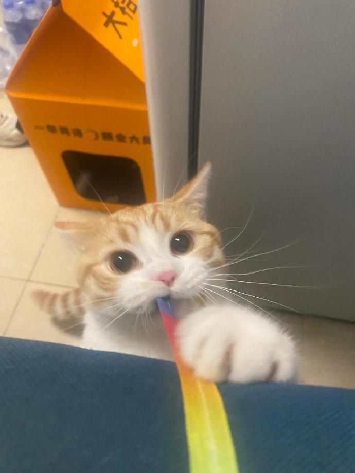 猫:这样收起来才不会伤到别人哦😊萌宠宠物