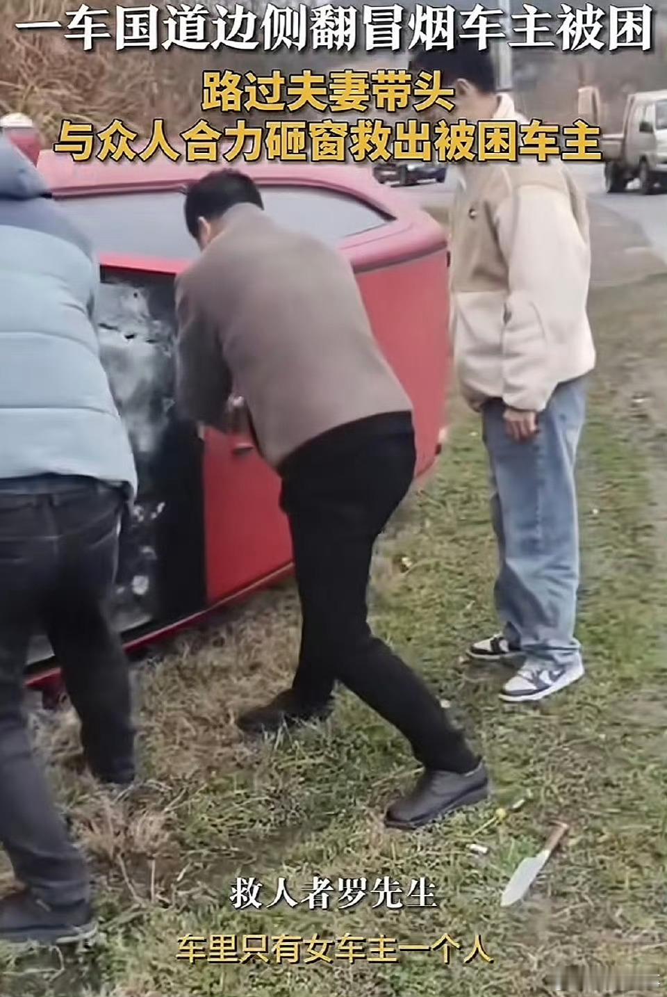 女子翻车被压货车司机带头救人近日,湖南湘乡市翻江镇一辆装载白酒的小车侧翻路边,车头持续冒烟,女司机被副驾驶位置的大箱白酒压住无法脱身,情况紧急。途经此处的货车司机罗勇发现后立即停车施救,捡起石头破窗,并同时呼喊周围人员报警求助。在其带动下,多名群众参与救援,合力将被困女子救出。经确认,女子无严重伤情。车轮前的每一次抉择,既需敬畏规则守住底线,也需肯定危局中的人性光辉。功过不相抵,但善行与责任皆不可抹灭。装酒小车翻车冒烟货车司机徒手砸窗救人