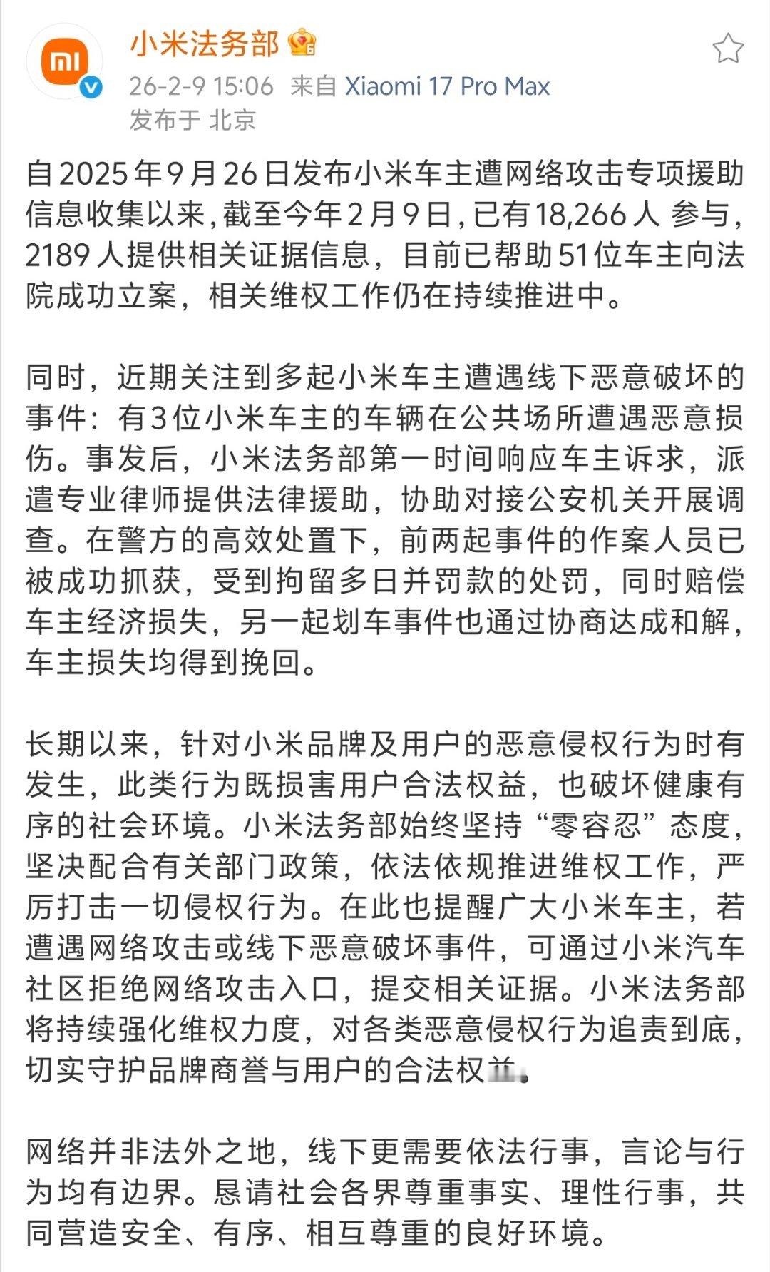 网络不是法外之地,线下更要依法行事。各位小米车主万一也遇到了类似情况,记得第一时间留好证据,及时反馈给小米。