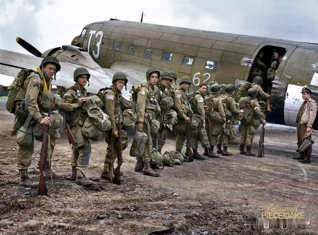 第82空降师的伞兵登上C-47运输机,准备参加"市场花园"行动。照片摄于1944年9月,英国。 美国空降部队 历史 历史老照片 二战 美国