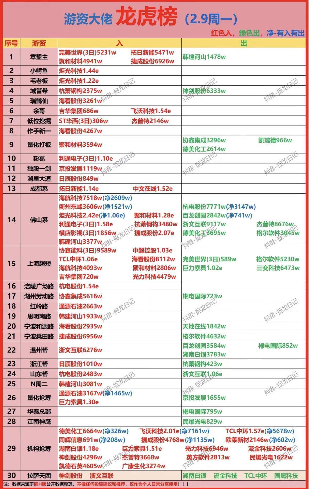 2月9日柚子龙虎榜 游资活跃,多股获大额资金进出,市场热点轮动频繁,投资需谨慎