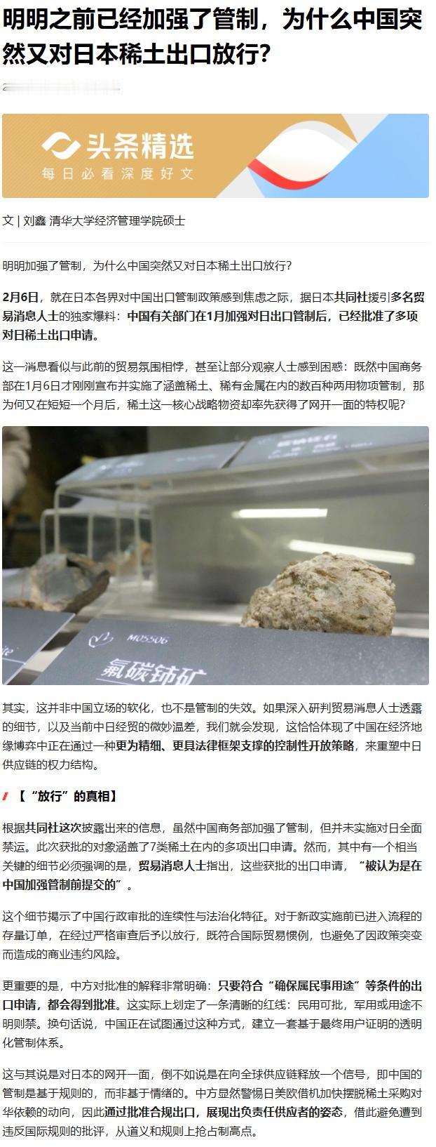 管制不是禁运!中国对日本的稀土出口,并不是情绪化一刀切的管制,而是战略性的深度控