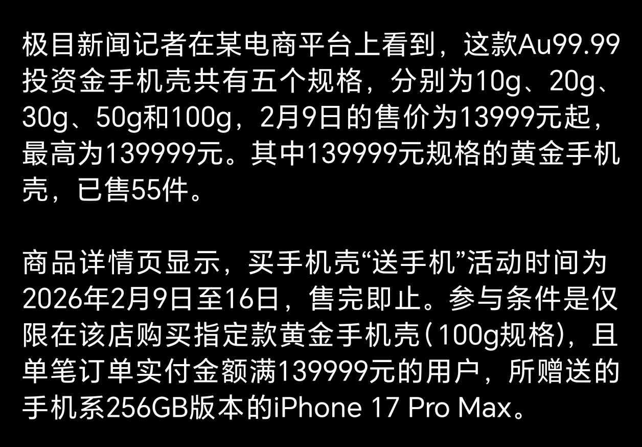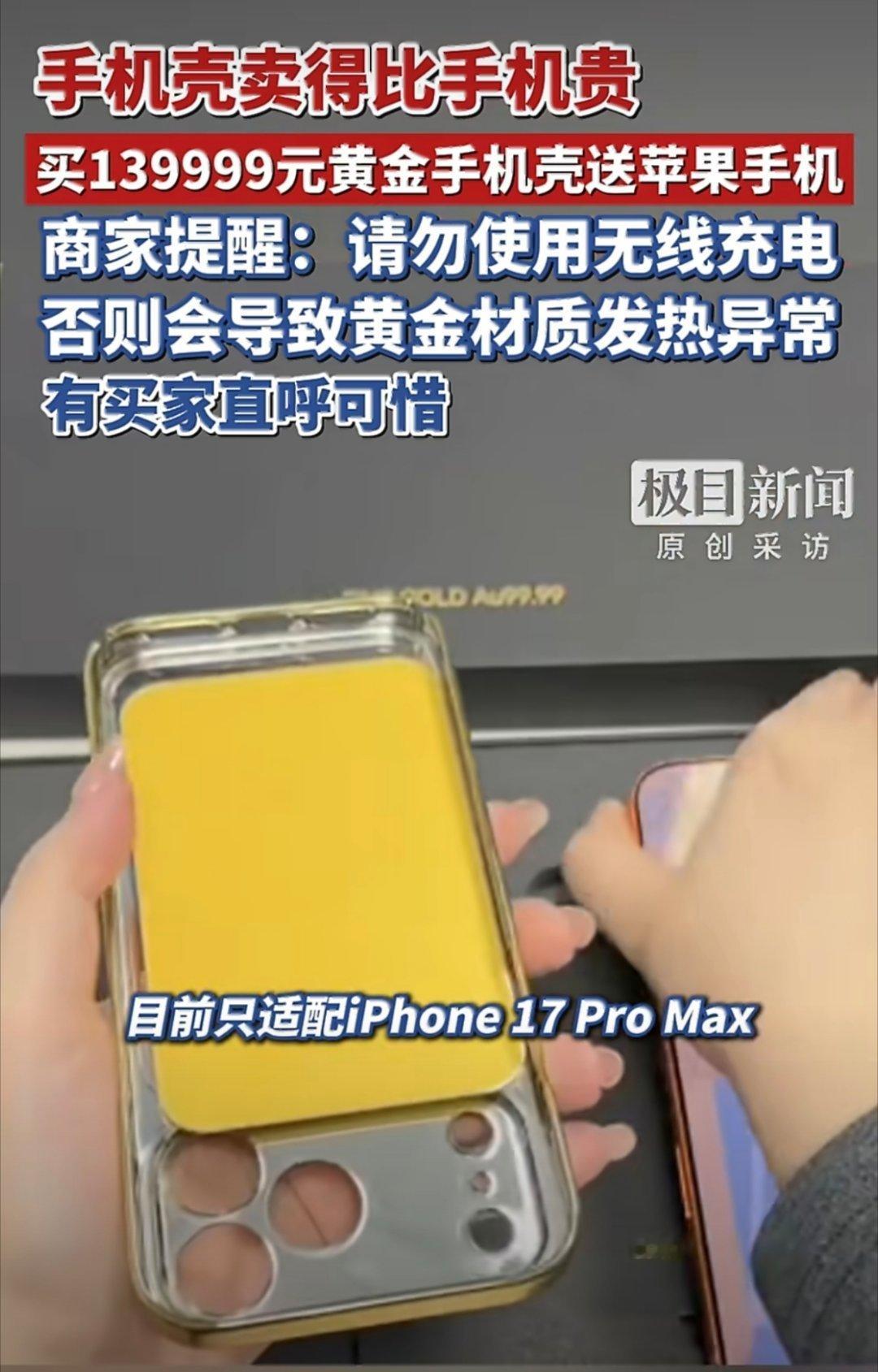 买139999元黄金手机壳送iPhone挺会整活,不过100g足金手机壳,先不说它有多么贵重,但就这个壳加手机的重量,这每天戴着对手腕也是极大的考验呀。