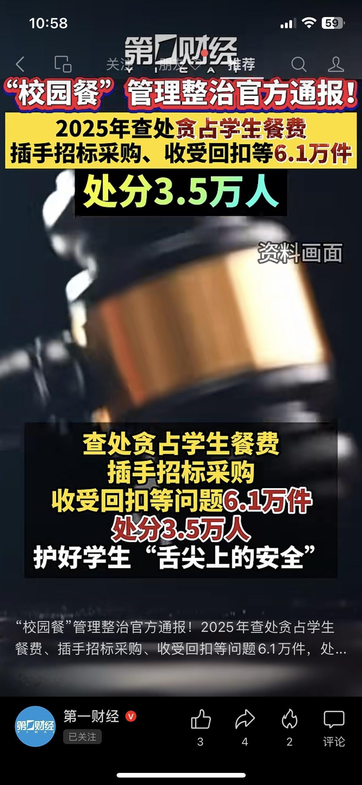 6.1万件贪腐!谁在啃孩子的饭碗? 2025年全国查处校园餐贪腐6.1万件,处分3.5万人!这些人连孩子的饭钱都贪,良心不会痛吗? 孩子的饭碗,就是我们的命根子。 咱们普通人能做的,就是多关注孩子的餐食,发现问题及时举报。 你敢让孩子在学校吃食堂吗?站队! 校园餐 民生热点 食品安全 教育反腐