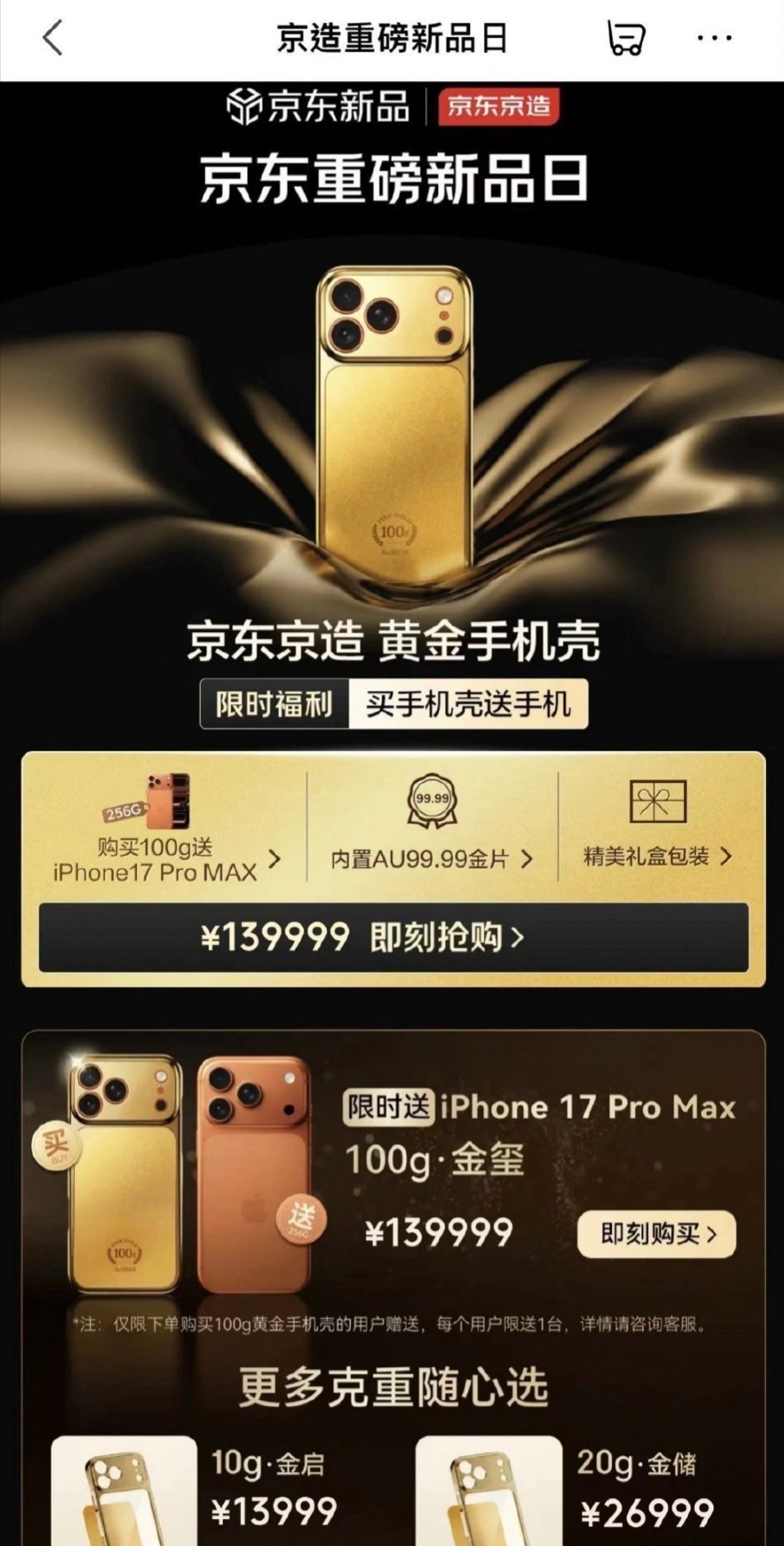 买139999元黄金手机壳送iPhone 牛了,14万一个的手机壳,应该是目前最豪华和奢侈的一个手机壳了吧,排面杠杠的。还送一台iPhone 17 Pro Max。要不是因为我出不起这14万,为了这手机,我都想买这个手机壳了!你们心动了吗?