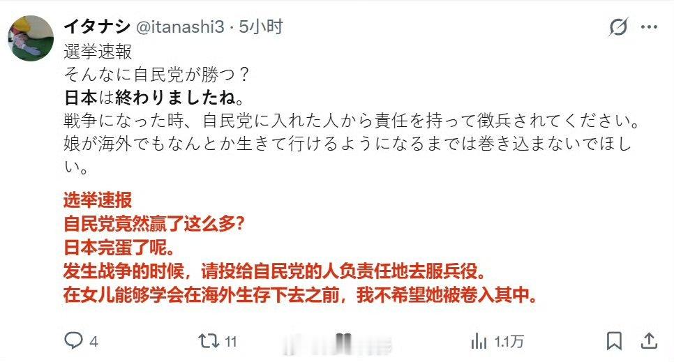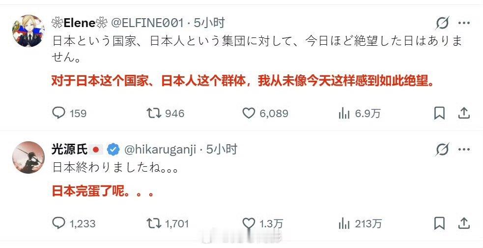 有日本网友哀嚎日本完蛋了别嘴上完蛋,来个现实的完蛋。谁让你们选的高市早苗。