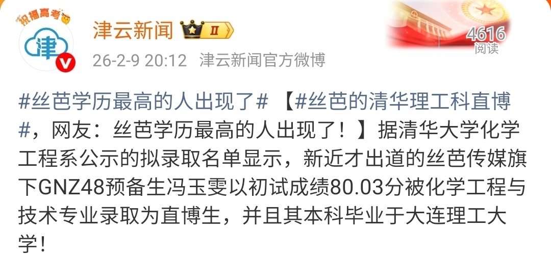 初试80.03分,要知道清华直博80分以上都是神仙打架的水平,这可是跳过硕士直接读博啊,含金量直接拉满。关键人家还说“学业和偶像都是第一选择”,要两边兼顾。