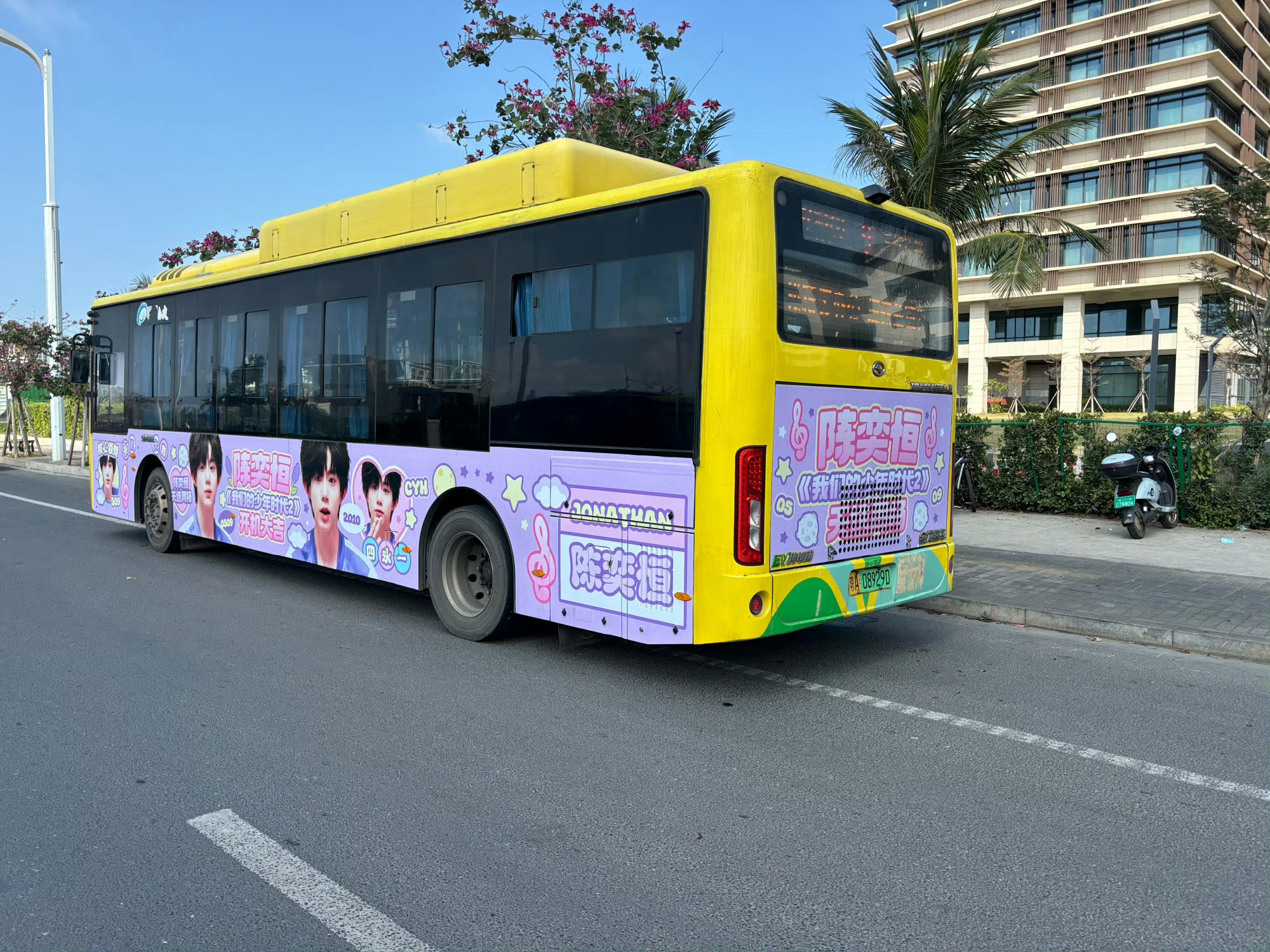 陈浚铭海口开机应援 陈浚铭《我们的少年时代2》开机应援大巴车+注水旗+花篮开机大