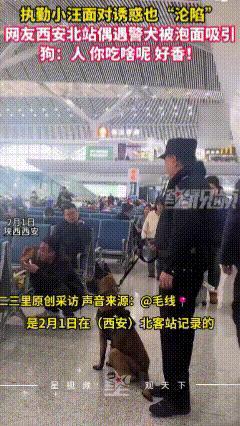 笑不活了!😂西安火车站候车大厅,一位男子候车时觉得有些饿,便买了一桶方便面充饥。当打开包装时,泡面的香味飘了出来,正在执勤的警犬寻着香味找了过来,直接蹲在这位旅客的旁边,竖起耳朵,两眼死死盯着那桶芳香四溢的泡面,馋得口水直流。好像在说“我看看你吃的啥呢,咋这么香”😂 泡面旅客见状,将碗往边上挪了挪,没想到狗狗也往前凑了凑,斜着脑袋用祈求的眼神看着那碗泡面,并轻轻摇晃着尾巴,好像在说“你就给我尝一口吧”😂驯导员轻轻拉动引导绳,可毛孩子却文丝不动,目不转晴盯着男子的那碗泡面,呼哧呼哧扇动着鼻子 。 泡面旅客被毛孩子可爱呆萌的样子逗乐,实在不忍心,便想分一口给它,却被训导员连忙制止。“警犬有严格的饮食标准,不能随便吃人类的食物,怕影响它的健康和训练状态”。 被拒绝的警犬只得失望的蹲在不远处,训导员也没强行拽走,眼巴巴看着男子吃完泡面后,才上前嗅了嗅空碗,一步三回头悻悻离开,逗得周围旅客忍俊不禁。 不得不说,警犬真的是训练有素,和普通狗狗有明显区别,嘴再怎么馋那碗泡面,但没有训导员的命令, 也不能违反纪律而轻举妄动。