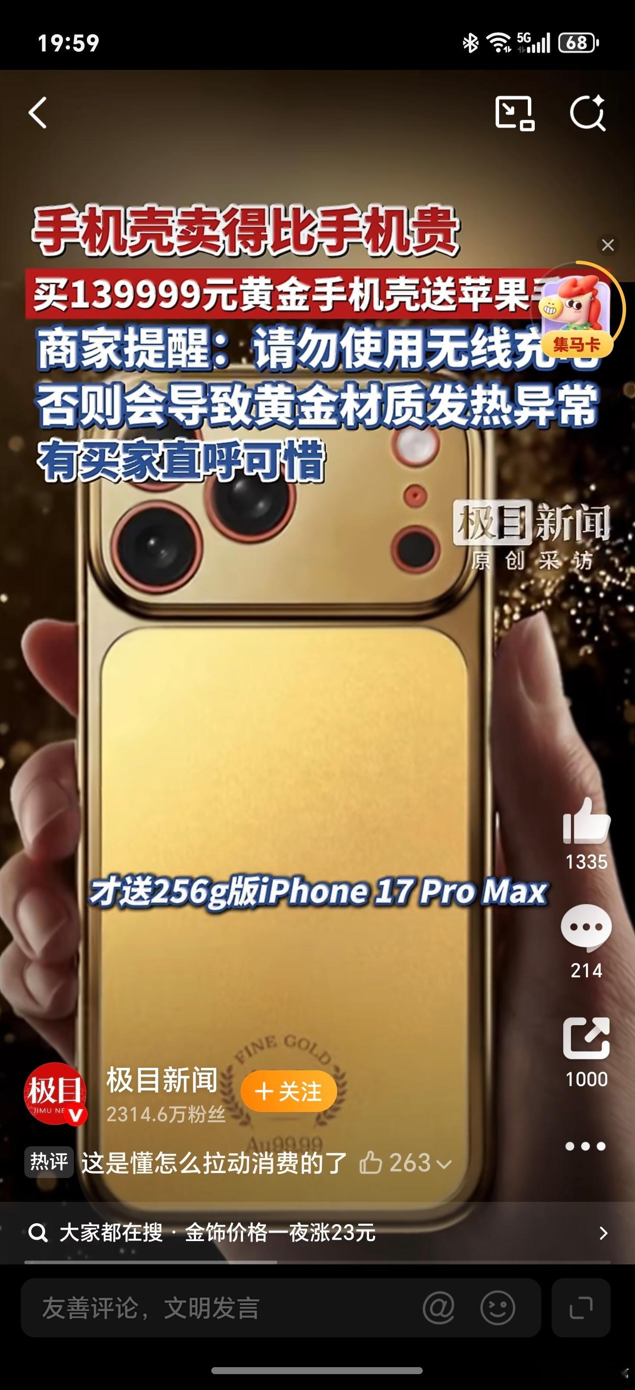 买139999元黄金手机壳送iPhone一时分不清,手机壳和手机哪个才是附属品了!土豪都这么玩了吗?