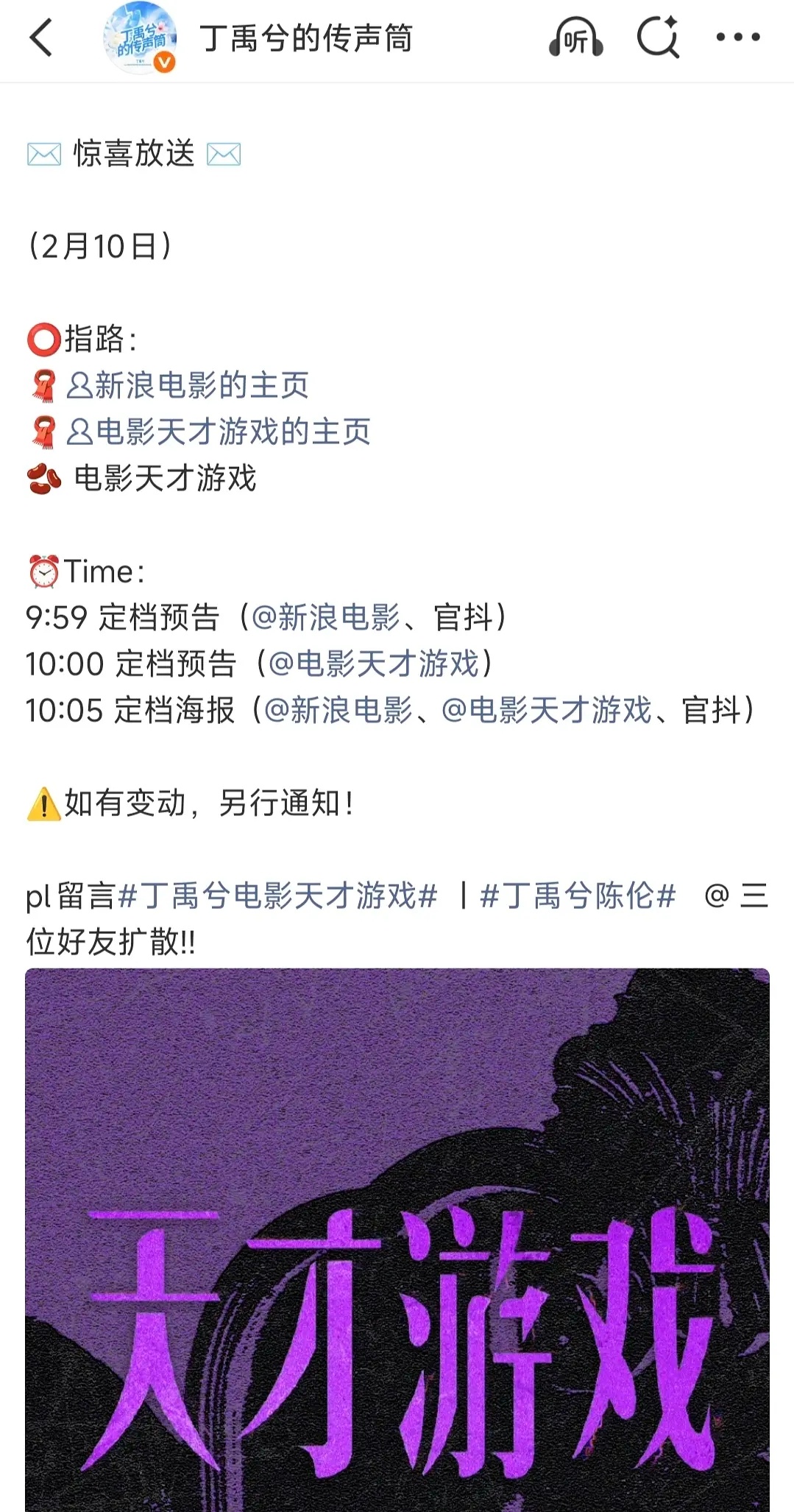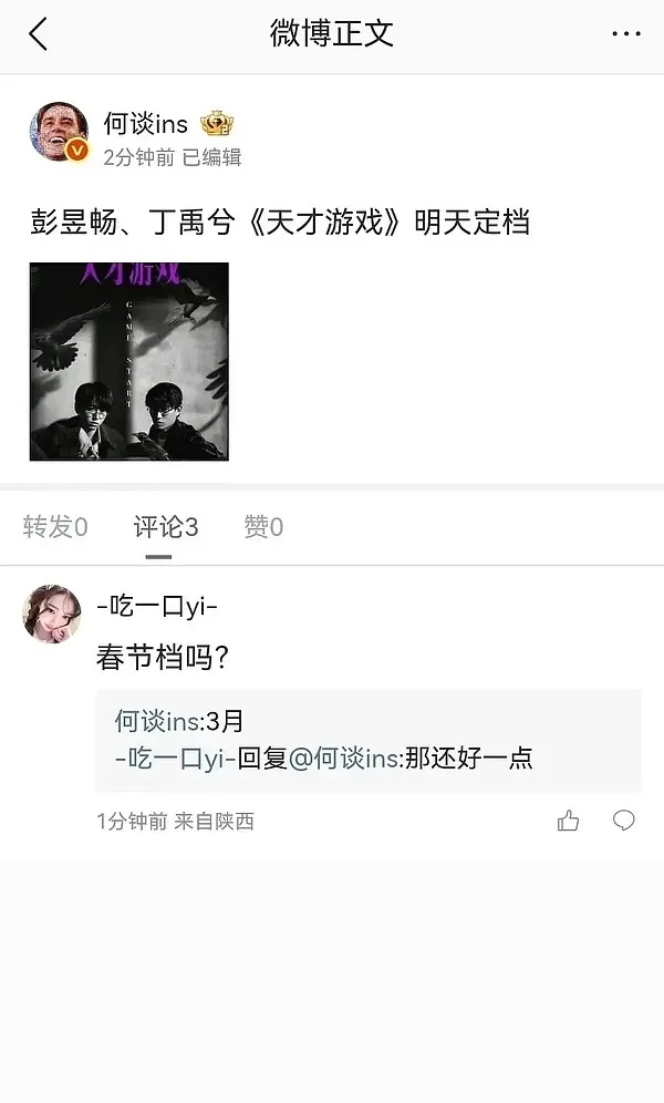 丁禹兮和彭昱畅的电影天才游戏空降