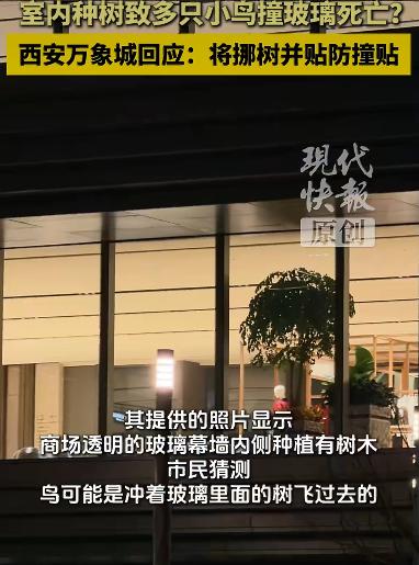 有多只小鸟接连撞上了商场的玻璃幕墙,不幸死亡。这事儿被路过的市民发现后,很快引发了大家的关注和讨论。 事情是这样的,有市民在路过万象城时,意外看到玻璃墙外躺着好几只小鸟的尸体,仔细一数,竟然有五六只。这些小鸟一动不动,显然已经没了生命迹象。从市民提供的照片可以看到,商场的玻璃幕墙非常透明,内侧还种植着一些树木,绿意盎然。大家猜测,这些小鸟可能是把玻璃里的树当成了真实的树木,想飞进去栖息或者觅食,结果一头撞了上去。毕竟,玻璃对小鸟来说是完全透明的,它们很难分辨出哪里是通道,哪里是障碍物。 这件事被曝光后,很快在网上引起了热议。很多人对小鸟的死亡感到痛心,毕竟它们是无辜的生命。同时,大家也开始思考,为什么会出现这样的情况?有人指出,现代建筑中大量使用玻璃幕墙,虽然美观,但对鸟类来说却是个不小的威胁。尤其是当玻璃附近有树木、绿植时,小鸟更容易产生错觉,误以为可以飞进去。这种情况并非个例,国内外都有类似的事件发生,只是这次发生在西安万象城,引起了更多人的关注。 面对公众的关切,西安万象城方面很快做出了回应。商场工作人员确认了此事,并表示已经对现场进行了处理。为了防止类似事件再次发生,商场决定采取一系列措施。首先,他们会对靠近玻璃区域的树木进行全面排查,把可能吸引小鸟的树木挪移到更合适的位置,减少小鸟被吸引过来的可能性。其次,商场还计划在玻璃幕墙上加装防撞贴纸。这种贴纸通常带有醒目的图案或标记,能够打破玻璃的透明感,让小鸟更容易察觉到障碍物的存在,从而避免撞击。 除了这些具体措施,商场方面还表示,会进一步优化相关空间布局和安全措施。比如,考虑在玻璃幕墙附近设置警示标识,或者调整绿植的摆放方式,尽量降低对鸟类的影响。这些举措得到了不少网友的认可,大家认为商场能够正视问题并积极改进,体现了对生命的尊重和对环境的责任感。 这件事也给我们提了个醒:在追求建筑美观和现代化的同时,如何更好地与自然和谐共处,是一个值得深思的问题。希望通过这次事件,能有更多人关注到鸟类与玻璃幕墙的冲突,共同为保护这些可爱的生灵出一份力。 来源:现代快报