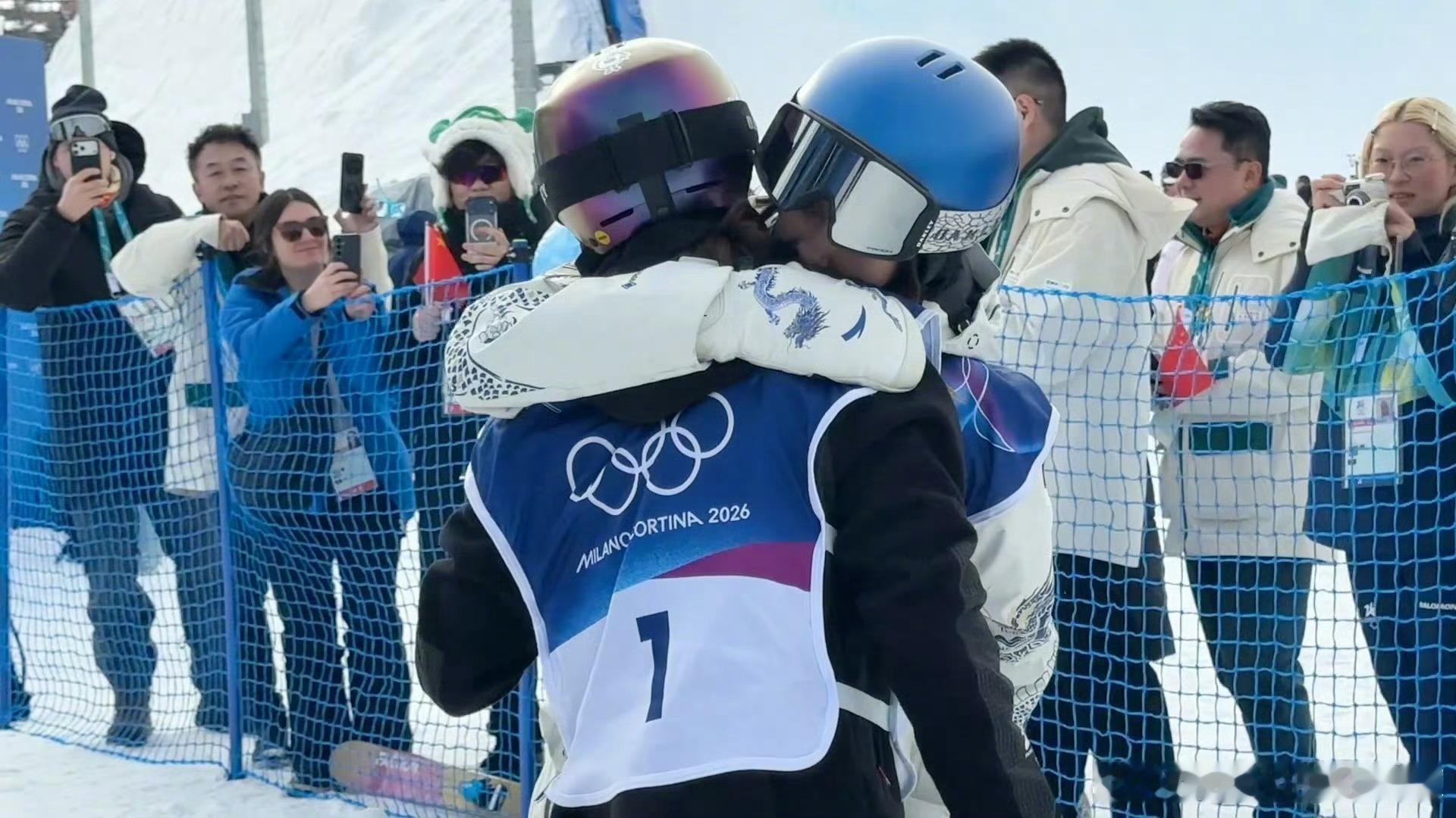 第一跳锁定榜首后,她先拥抱对手,再紧紧抱住妈妈——转身时悄悄擦了眼泪。压力与期待,此刻都化作雪板上的风。旗开得胜,继续冲!米兰冬奥会 🔥谷爱凌决赛第一跳排名第一