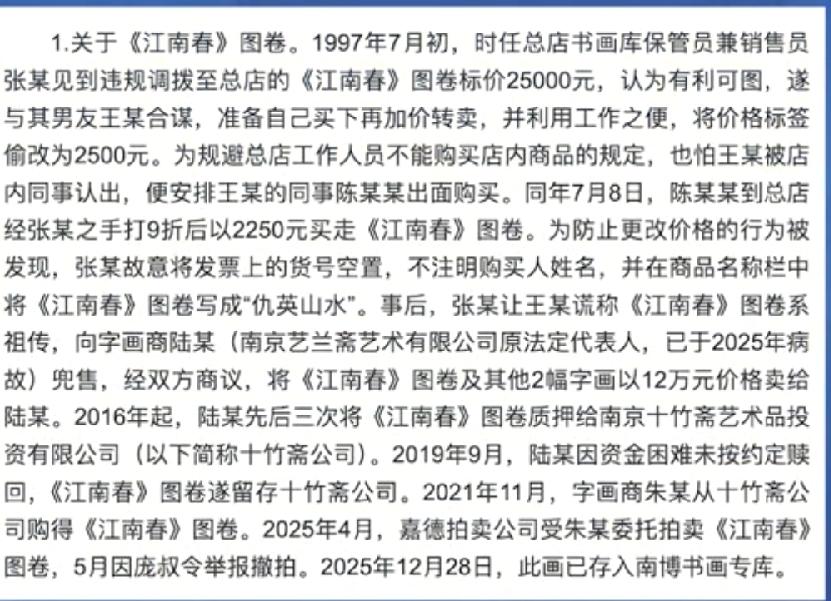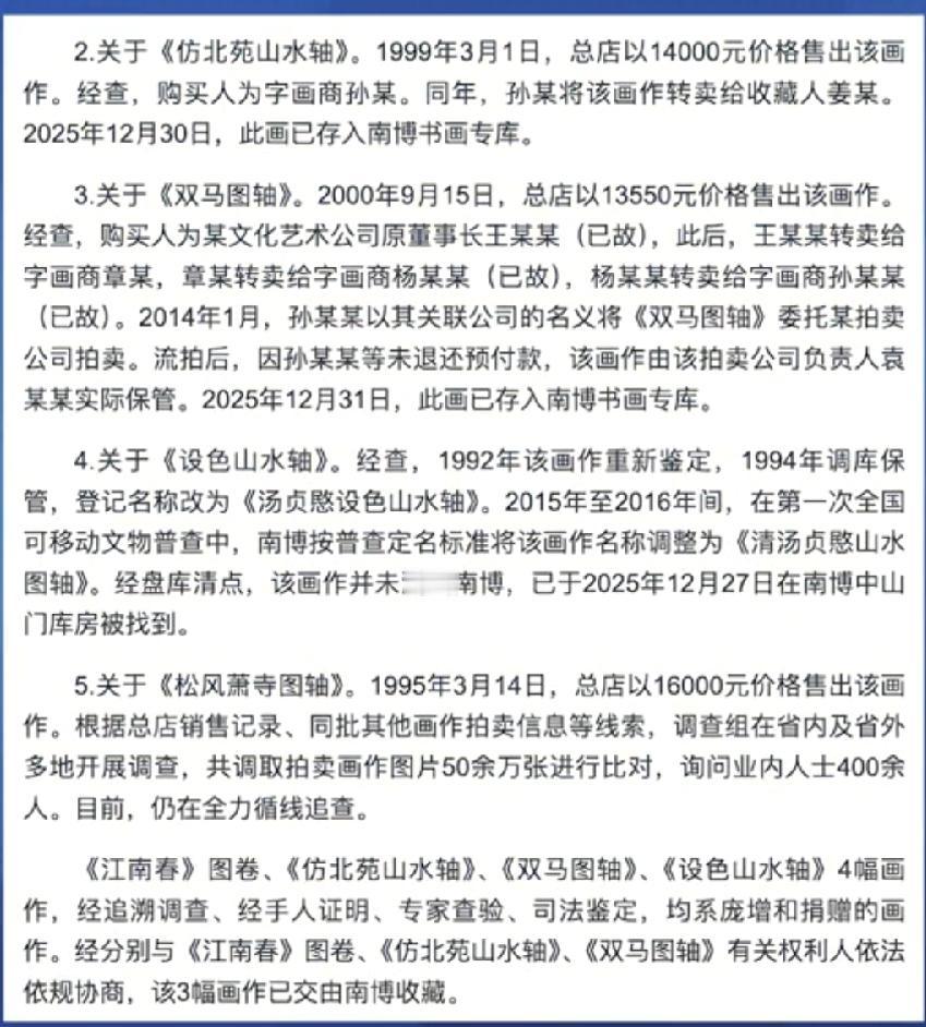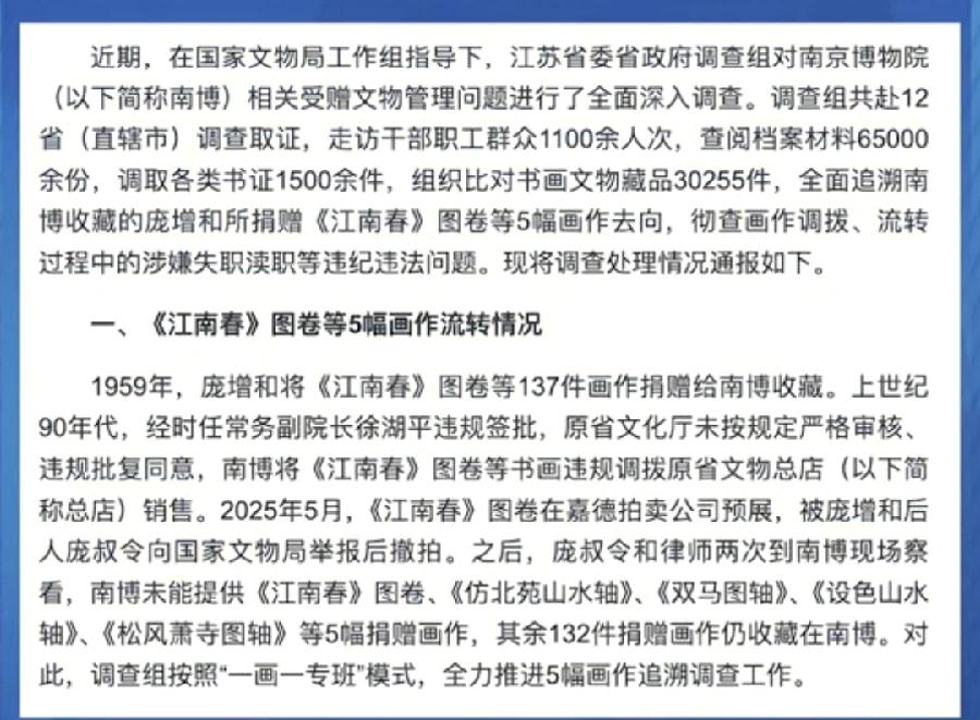 实锤了!南博徐湖平,严重违法违纪被查!江苏省通报南博事件调查结果!徐湖平时任南博主持工作副院长,监守自盗,违规调拨多幅画作至南京总店!但是自己还没来得及获利,又被总店工作人员监守自盗,螳螂捕蝉黄雀在后!江南春等画作被低价买走,又被多次转手流入拍卖市场!目前大部分画作已物归原主,重新入南博画库!徐湖平竹篮打水一场空!80多了,快过年了,以后的年都别过了!