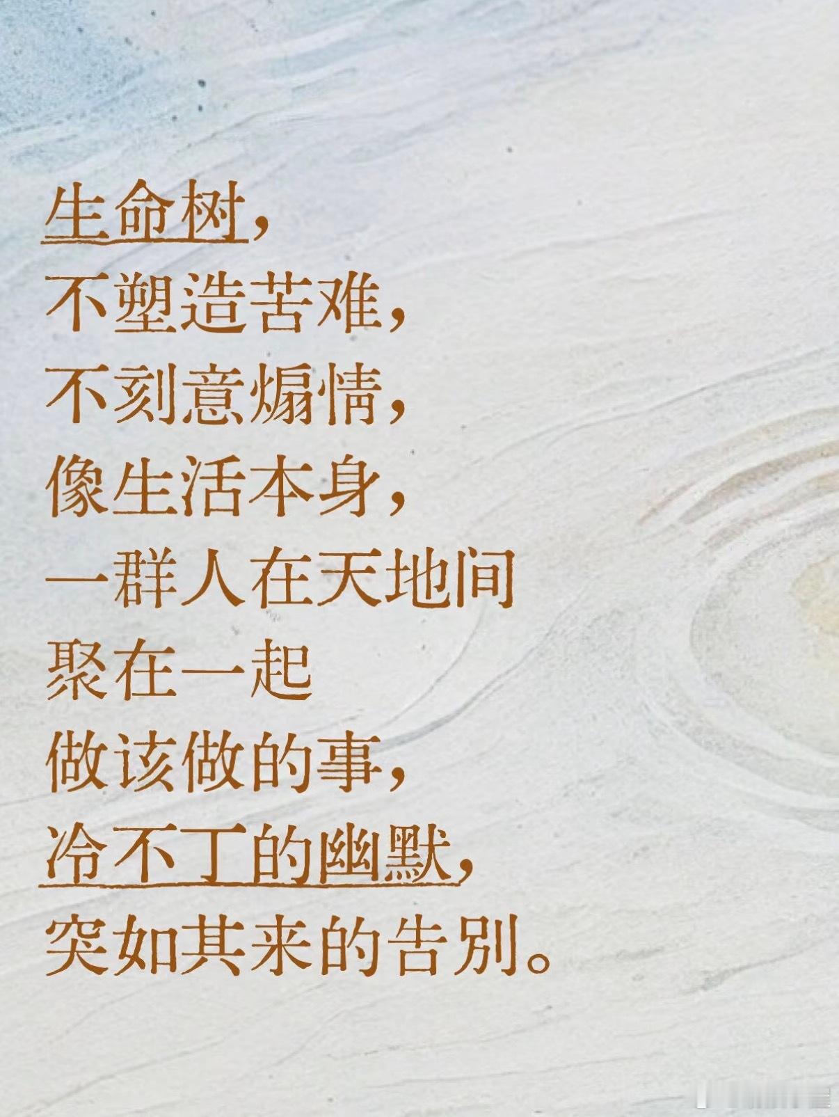 生命树不刻意渲染苦难 它用最温柔的方式讲最厚重的故事🥰🌿,不刻意卖惨、不强行升华,却能让人读懂坚守的意义,平淡中见真情,看完内心柔软又充满力量。