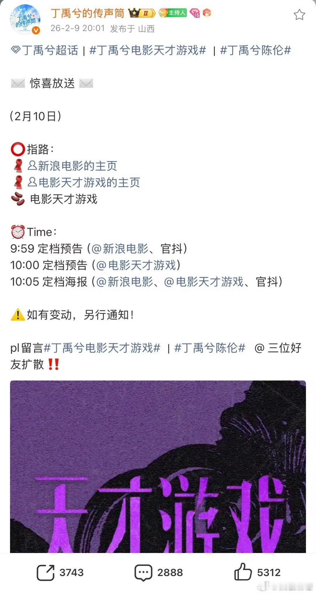 丁禹兮的电影也是春节档,今年的春节档基本上部部流量啊