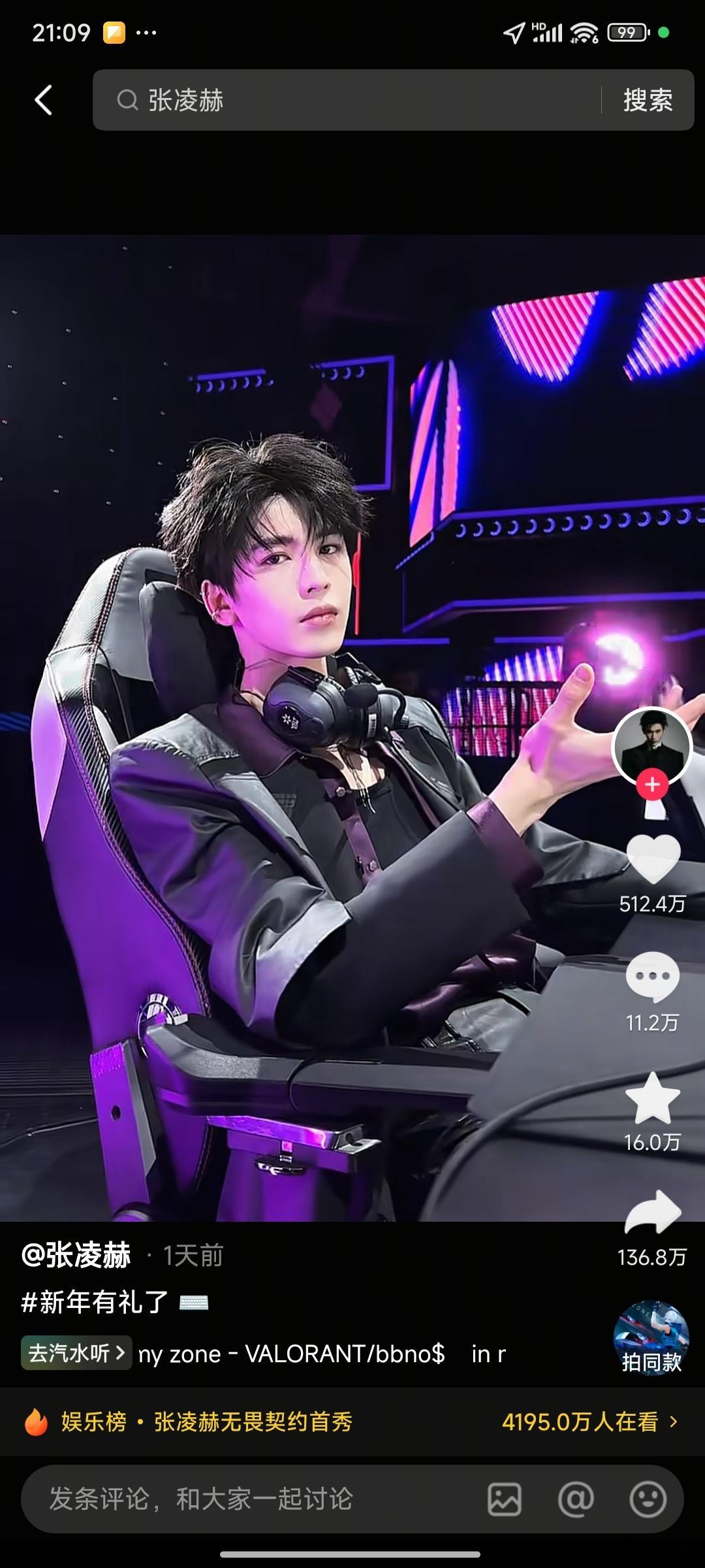 张凌赫这个视频又出圈了,🫘音一天点赞超五百万,转发136万➕次 ,抖人爱帅哥~手指戳戳戳!