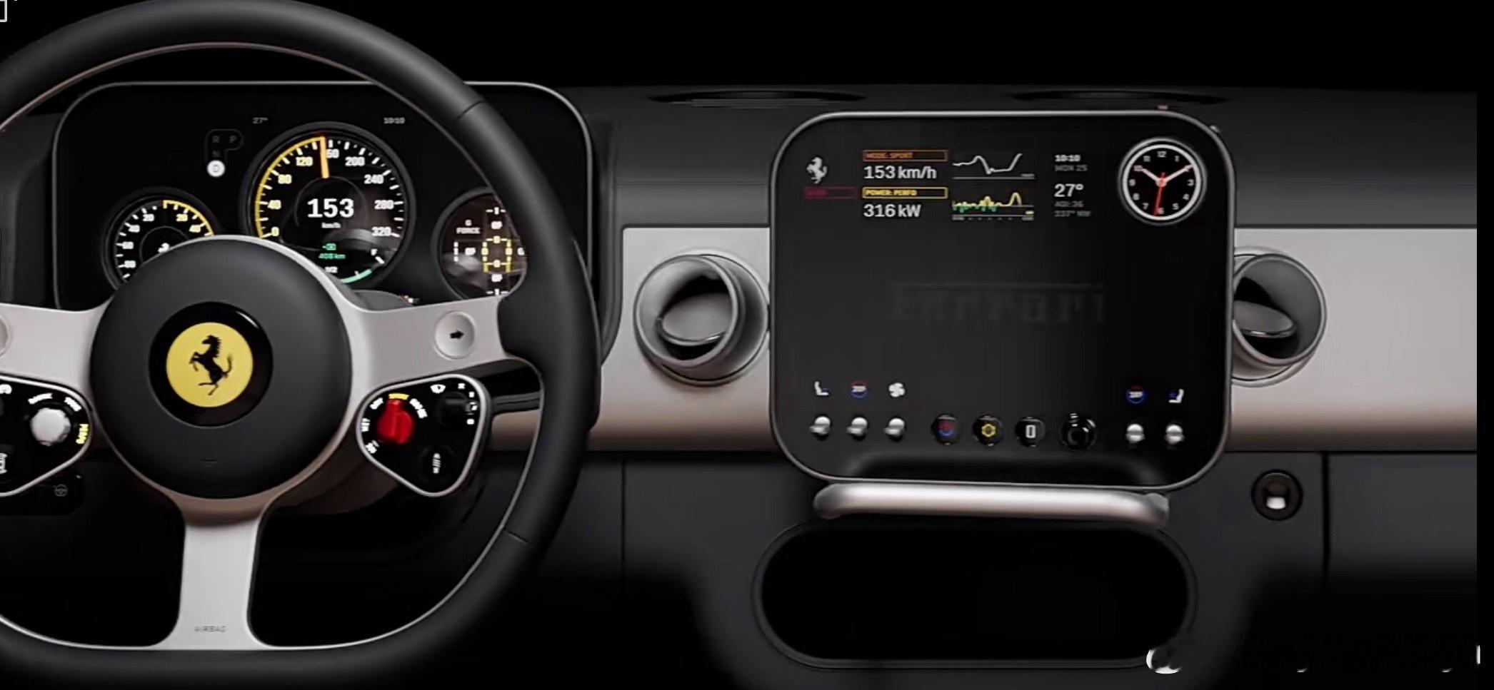 开着这样的法拉利会不会更割裂啊,方向盘是意大利的运动激情,屏幕是加州海岸的科技风情,内饰IP又是千禧年德国概念车的味道