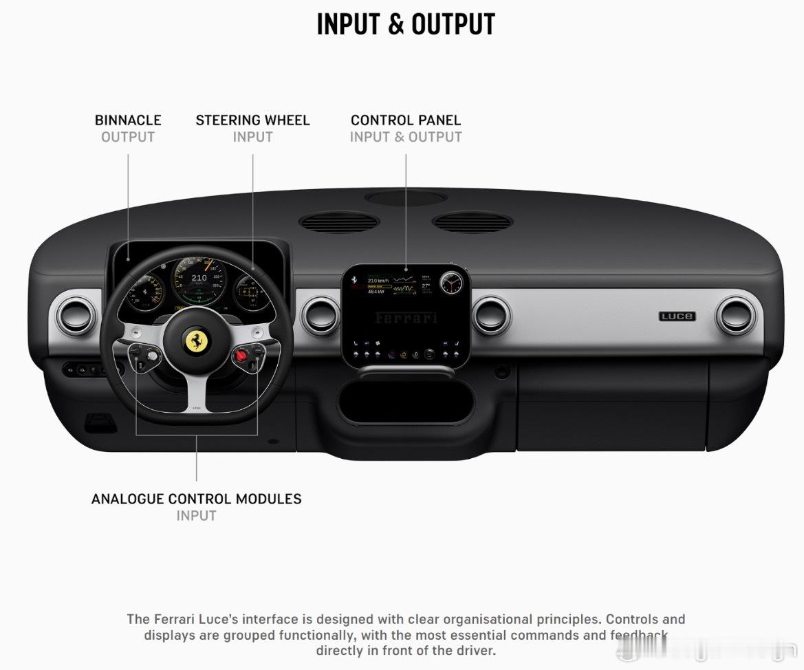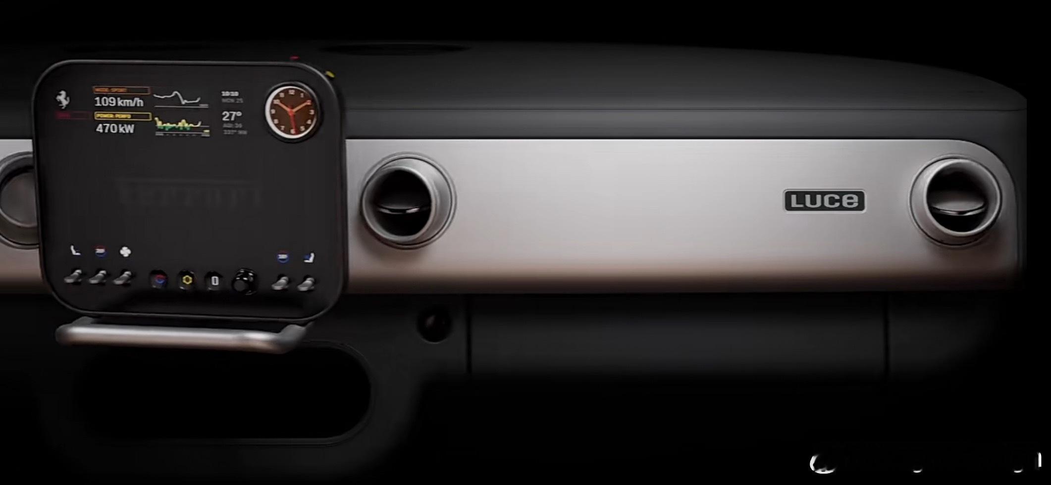 法拉利首款纯电车型Luce内饰官图发布!非常的Apple Style,和方向盘上的黄色跃马车标格格不入