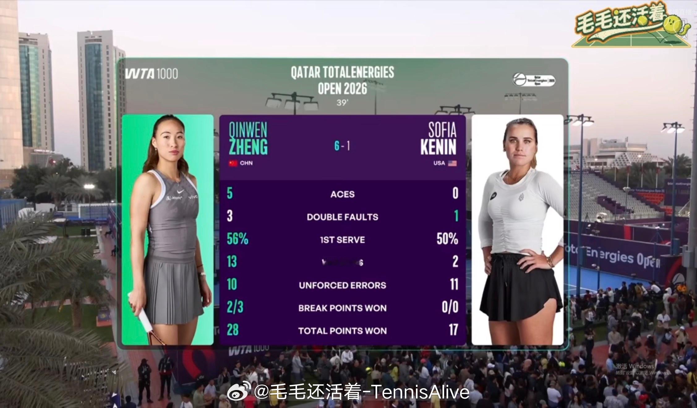 今天郑钦文完全 Ace 女王,发出了 20 记的 ACE 球。一发成功率很高 6