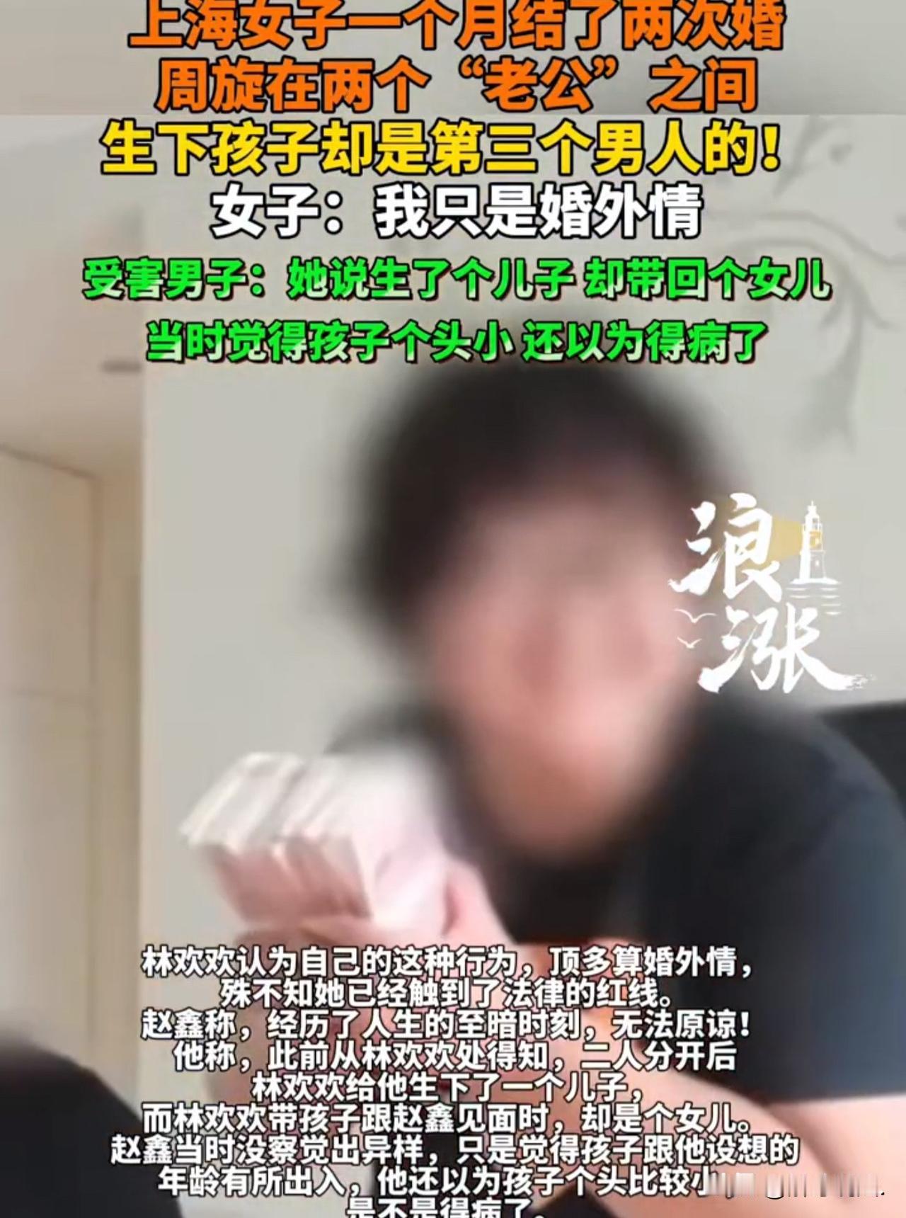 “妥妥的海后啊!”上海,女子在父母逼婚的压力下,与同样被父母逼婚的男网友领证结婚,二人约定,婚后,各玩各的,互不干涉!4年后,女子在网上认识一名男子,并与其结婚,过“周末夫妻!”并谎称怀了对方的孩子,骗取钱财。于此同时,女子还与一开民宿男子结婚,对方还给了她8.8万的彩礼。女子怕露馅,做戏做全套,还雇人假扮了她的父母。纸包住火,两个男子就都是在其“假父母”身上起了疑心!双双报了警。 2017年,在父母催婚的压力下,在网络上结识了同样被催婚的程伟。 两人一拍即合领证结婚,同时,约定婚后互不干涉彼此生活。 虽然,这种“契约婚姻”起初让林欢欢感到自由,但很快她便渴望正常的婚恋关系。 于是,她在网上寻找新的目标。 2021年,在北京打拼的赵鑫通过网络认识了自称经营宠物店的林欢欢,两人迅速陷入热恋。 为了追随爱情,赵鑫毅然辞去北京的工作,搬到上海与林欢欢过上周末夫妻的生活。 同年6月,林欢欢告知赵鑫自己怀孕,满心欢喜的赵鑫立刻将父母接到上海商议婚事,双方“家长”见面十分顺利,当年国庆节,两人在山东老家举办了盛大的婚礼。 然而每当赵鑫提出领证时,林欢欢都以“自己是失信人员,会影响对方”为由推脱,还谎称单身女性也能为孩子办理出生证明。 然而,林欢欢不仅隐瞒了与程伟的合法婚姻,就连怀孕证明都是从网上下载的假单据。 赵鑫还天真以为自己娶到了意中人,还将为自己生儿育女,就在他为未来婚姻构建美好蓝图的时候。 其不知,林欢欢早在这时,与浙江商人李文龙交往上了。 李文龙在上海开了一家民宿,与林欢欢也是在网上认识的,尽管两人年龄相差十几岁,但林欢欢的温柔体贴让李文龙迅速沉沦。 李文龙也是个痴情种,为了给她更好的生活,特意租下一套别墅。 双方“家长”见面后也对这门婚事十分满意,李文龙父母还主动送上8万8千元彩礼。 当年11月,也就是与赵鑫婚礼过后仅一个月,林欢欢在浙江与李文龙再次举办婚礼,同样以各种理由拖延领证。 两场婚礼、两位“丈夫”,林欢欢能周旋自如的关键,是她精心设计的伪装,雇佣临时演员假扮父母。 为了避免穿帮,她给赵鑫和李文龙两家安排了不同的演员,每次花费3000元左右。 林欢欢后来坦言,看到演员们扮演“父母”的样子,有一刻她自己都被感动了。 但纸终究包不住火,骗局的败露恰恰源于这些假父母。 李文龙因民宿经营纠纷被迫回到浙江老家后,林欢欢为了维系关系,给他发送了孩子的视频,视频中画面外有男子逗孩子的声音。 敏感的李文龙立刻察觉,这个声音与自己见过的“岳父”完全不同,疑心自此产生。 与此同时,被林欢欢以感情不和为由分手的赵鑫也发现了破绽:林欢欢告知他分手后生下了儿子,但见面时却是个女儿,且孩子的年龄与她所说的孕期严重不符。 2024年末,疑虑重重的赵鑫和李文龙先后向上海警方报案,真相终于水落石出。 警方调查发现,林欢欢与程伟的婚姻关系一直存续,2023年两人还共同生育了一个女儿,这个孩子与赵鑫、李文龙没有任何血缘关系。 而林欢欢在与两位受害者交往期间,不断利用他们的愧疚心理和结婚意愿索取财物,仅李文龙一方就支出了彩礼、房租等共计十余万元。 面对指控,林欢欢说,自己的行为顶多算是“婚外情”!殊不知她早已触碰法律红线。 《刑法》第258条规定:有配偶而重婚的,或者明知他人有配偶而与之结婚的,处二年以下有期徒刑或者拘役。 林欢欢在与程伟存在合法婚姻的前提下,先后与赵鑫、李文龙公开举办婚礼、以夫妻名义共同生活,已经构成重婚罪。 同时,她隐瞒已婚事实、伪造怀孕证明、雇人扮演父母骗取彩礼和财物,符合诈骗罪的构成要件,并非简单的婚外情或道德问题,而是要承担刑事责任的犯罪行为。 此事曝光后,网友纷纷调侃:所以老祖宗的智慧依然发挥着作用,结婚还是要知根打底门当户对才能提高人的智商。 明知道三角形具有稳定性,该女子偏偏要第四个人参与进来,不出事才怪。