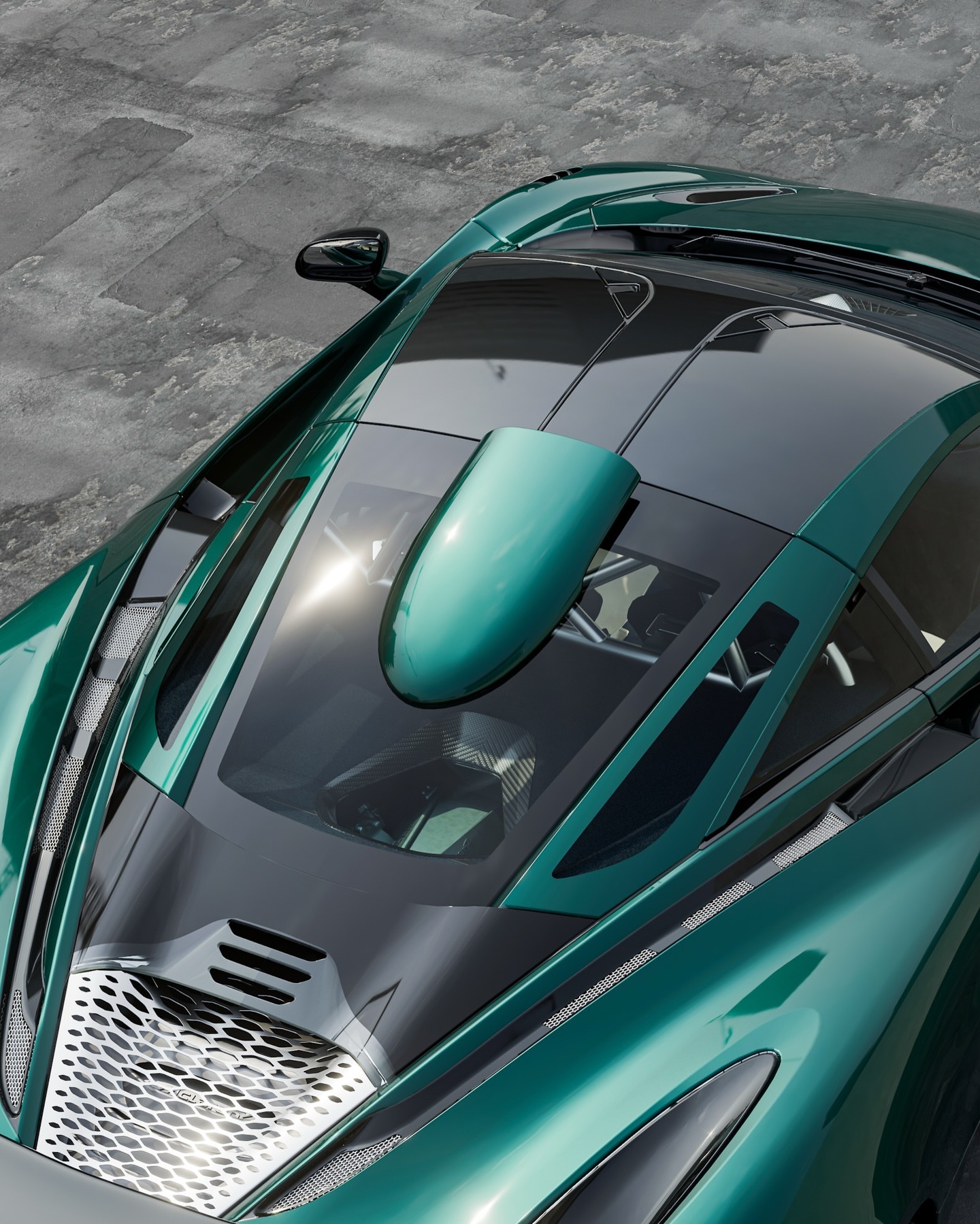 选择了经典的XP绿色漆面作为外观,喷漆于立柱、车顶气流口和后保险杠部分,为这个原本过分强烈的超跑增添了一丝优雅。你也许还会注意到,碳纤维已经完全被漆成了深黑色,进一步提升了设计感。
