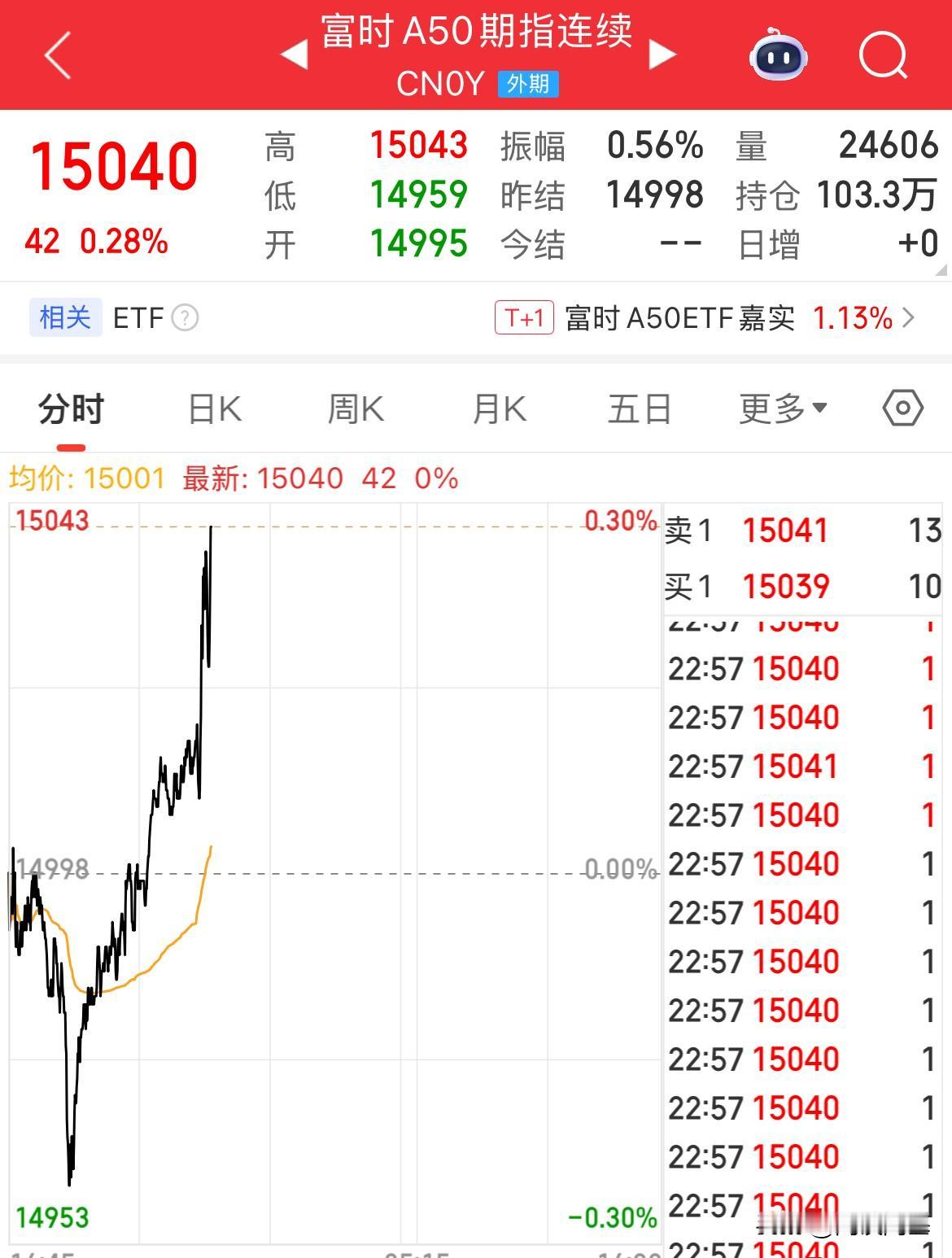 有戏了?A50夜盘直线拉升涨幅0.27%,冲上15000点,恒生指数期货拉升涨幅0.51%,美股震荡冲高回落,市场静待11日的美国非农数据 现货黄金、现货白银拉升,现货白银涨幅超2%,直接站81美元/盎司,美股三大指数震荡,纳指拉升涨幅0.08%, 英伟达涨幅超3%,高盛预期英伟达Q4营收或将达到673亿美元,同时盈利端也将超过市场预期,一切以业绩为事实, A50期货夜盘直线拉升涨幅0.3%,恒生指数期货涨幅0.6%,在今天大涨趋势下,市场情绪也在回暖了。