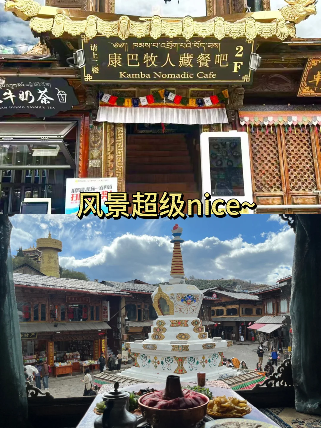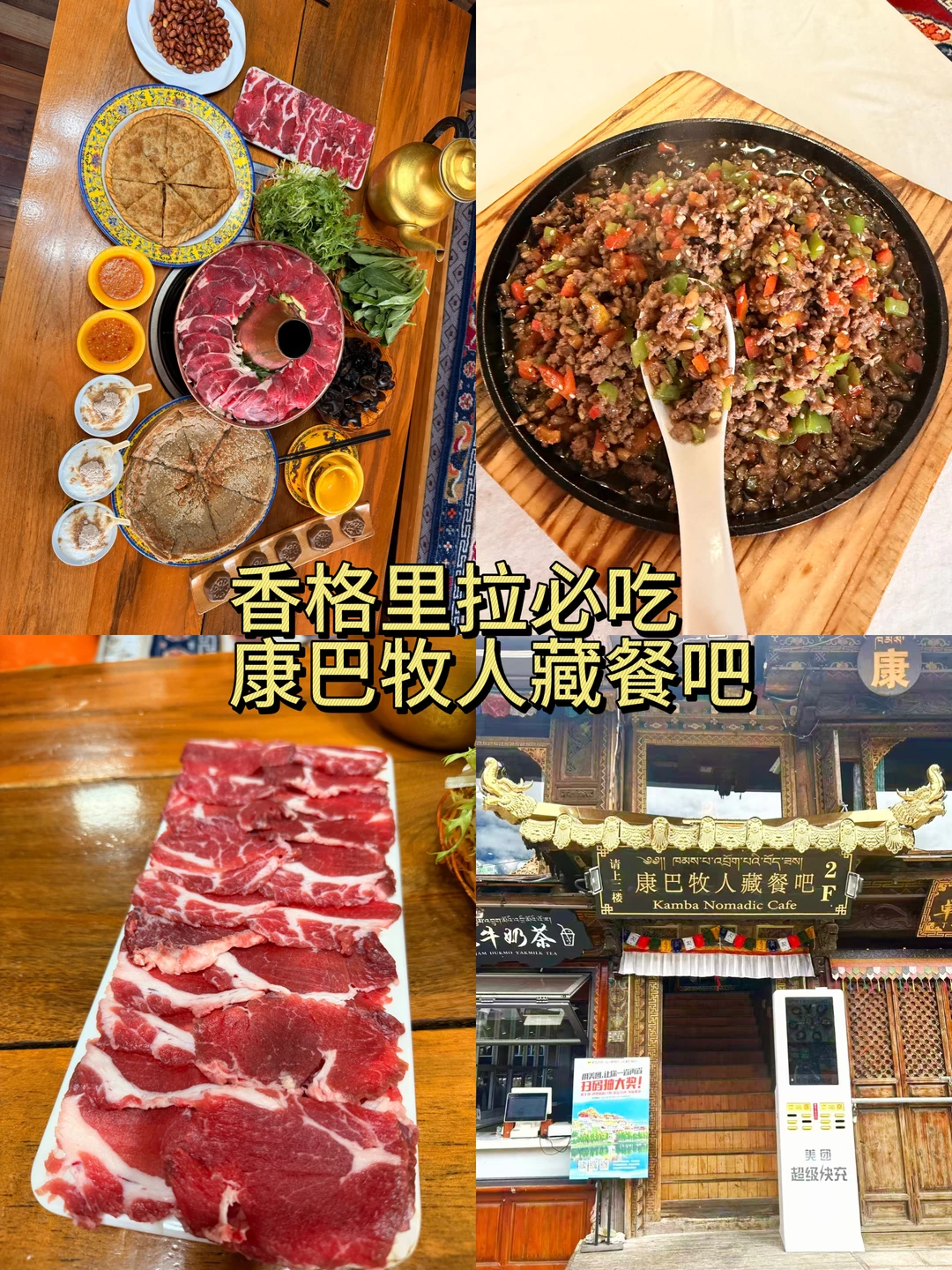 香格里拉!这家能俯瞰独克宗古城的藏餐我能吹爆! 康巴牧人藏餐吧直接把独克宗古城的全景搬进了餐厅,窗边位真的太太太顶了! 白天坐在窗边,古城的藏式碉楼和远处的群山尽收眼底,随手一拍都是大片; 晚上古城的灯火星星点点,吃着藏餐看着夜景,幸福感直接爆棚! 菜品更是盲点不踩雷,本干饭人直接炫到撑: ✅ 牦牛火锅:汤底是浓郁的骨汤,牦牛肉嫩到离谱,秋冬吃一锅暖到骨子里 ✅ 手抓羊肉:肉质软烂不膻,蘸上干料香到舔手指 ✅ 藏式烤包子:外皮酥脆,内馅是满满的牦牛肉,一口爆汁 ✅ 青稞酸奶:高原特有的醇厚口感,酸甜解腻,吃完还想打包 来香格里拉玩 直接冲这家就对了!!