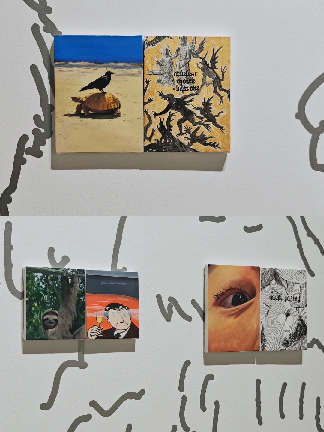 🍷展览并非呈现酒精本身,而是以“微醺”为感受载体,既包含抽象轮廓、暧昧包裹、晃动平衡、模糊边界的感官体验,也涵盖悲伤底色中的温暖、冷静内核下的炽热等复杂情绪,本质是对日常逻辑的柔软叛逃,是清醒中对世界的诗意重构。