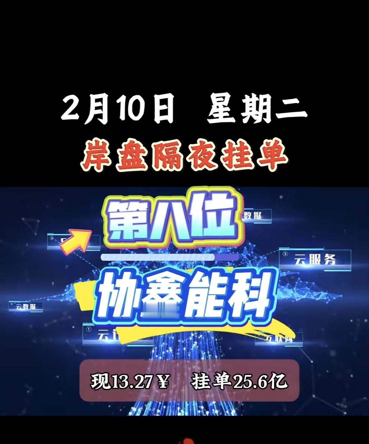 2月10日,暗盘隔夜挂单,第八位协鑫能科,现价13.27¥,挂单25.6亿。 协鑫集成获巨额资金青睐,暗盘隔夜挂单强势领跑,市场热度飙升