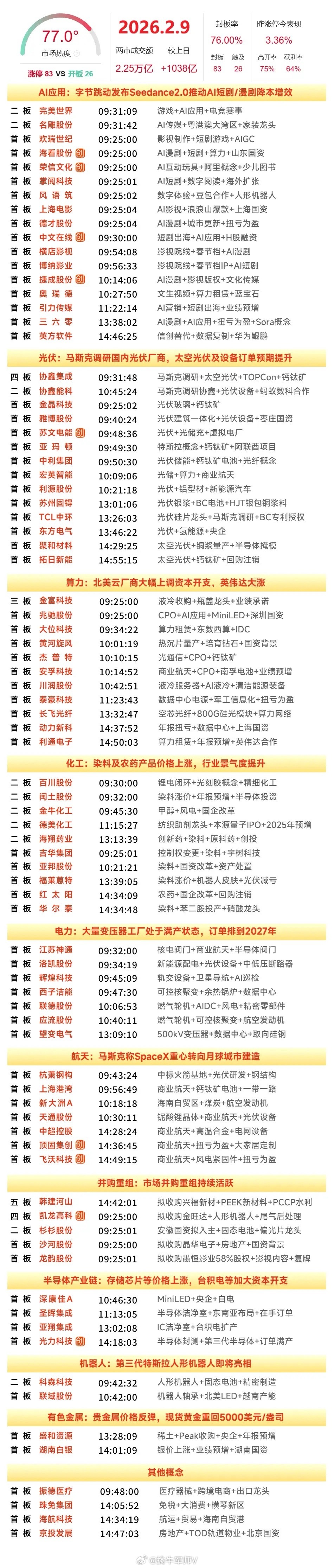 2月9日涨停复盘|三大指数集体大涨,光通信全线强势,光伏热度不减,AI应用再