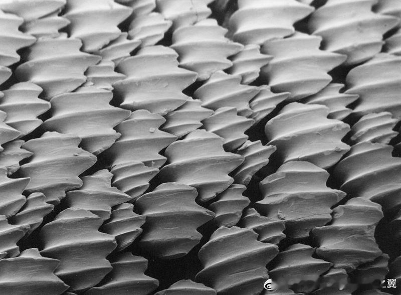 AeroSHARK是一层厚度约50微米的透明胶粘薄膜。薄膜上密布着微米级的脊状突起(称为Riblets)。这些结构能减少飞行过程中空气与飞机表面之间的摩擦阻力(粘性阻力),优化流场。