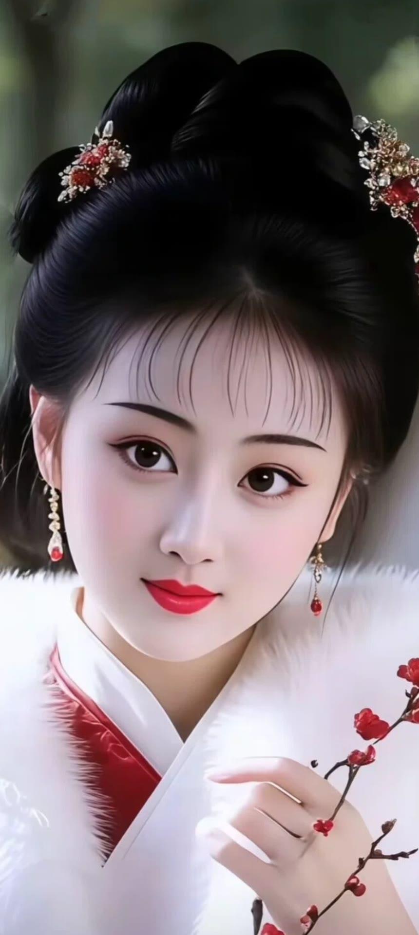 “穿越千年的古典美人,红妆与花枝相映成趣”🌸💄