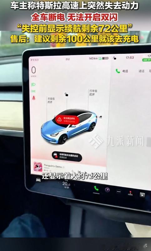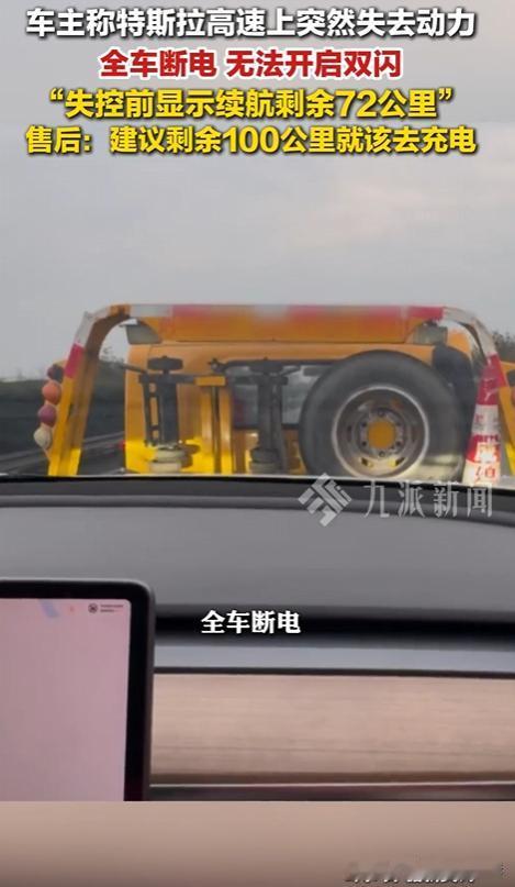 上海,陈女士驾驶特斯拉Model Y从上海前往台州,途中车辆续航表显还有72公里,距离服务区仅2公里时,车子突然断电,双闪也无法打开,陈女士被困高速。道路救援及时赶到,陈女士有惊无险。事后陈女士质问售后,售后称电池状态不稳定,建议剩100公里就充电,陈女士不满,将遭遇曝光,引发众多特斯拉车主共鸣,大家对电动车跑高速的安全续航及车辆续航显示、电池稳定性产生质疑。 本内容信息来源于:新黄河、九派新闻的报道... 陈女士当天规划好了去台州的行程,开着特斯拉Model Y就出发了,路上,车在高速上跑着,陈女士时不时瞅一眼续航表。 嘿,表显还有72公里,而离下一个服务区也就2公里了,她盘算着到服务区再充电,时间正好,既不用提前找地方充电浪费时间,又能保证接下来的行程顺利。 这看似美好的计划,马上就要被彻底打乱了,离服务区越来越近,大概就几百米的时候,车子突然开始不对劲了。 先是感觉动力明显不足,车速慢慢降了下来,还没等她反应过来,车子直接断电了。 这还不算完,更可怕的是,双闪也打不开了。 要知道,在高速上,双闪可是车辆遇到危险时的重要信号,打不了双闪,后面的车根本不知道前面有状况,很容易就追尾上来。 陈女士当时就慌了神,整个人都懵了,她握着方向盘,心里不停地在说:可千万别出事,可千万别出事。 此时的高速上,车流量还挺大,一辆辆汽车呼啸而过,带起的风把陈女士的车吹得微微晃动,每一秒都过得无比漫长,每一声汽车的喇叭声都让她吓得够呛,她想打开车门下车,可又不敢,怕被后面的车撞到。 就在陈女士感到绝望的时候,救援车就赶到了,救援人员迅速在陈女士的车后面设置了警示标志,然后把她和车转移到了安全地带。 陈女士这才松了一口气,整个人瘫坐在地上,等缓过神来,立刻联系了特斯拉的售后。她期待售后能给她一个合理的解释和解决方案,可没想到,售后的回答让她彻底火了。 售后竟然说电池状态不稳定,建议以后剩100公里的时候就充电。 陈女士质问售后:你们这说的是什么话?我按照续航表显示的里程开车,这有错吗?现在出了问题,你们就这么轻描淡写地推卸责任?要是我在高速上因为这出了大事,你们能负责吗? 售后在电话那头支支吾吾,也说不出个所以然来。 陈女士驾驶特斯拉途中车辆断电被困高速,这虽未直接造成严重人身财产损害,但特斯拉售后回应却不尽人意。 民法典规定,产品存在缺陷造成他人损害的,生产者、销售者应承担侵权责任。 特斯拉售后称电池状态不稳定,若该不稳定状态属于产品缺陷,且未提前充分告知消费者,就涉嫌侵犯消费者知情权。 消费者权益保护法也规定,经营者有义务保证商品或服务符合保障人身、财产安全要求。 特斯拉车辆续航显示不准确,导致陈女士陷入危险境地,可能未尽到安全保障义务。 若陈女士因此遭受损失,比如因救援产生费用或精神损害,可依据相关法律要求特斯拉赔偿。 不过,特斯拉若能证明电池不稳定是行业普遍现象且已尽到提示义务,或许可减轻责任。 但这一解释能否被接受,还得看具体情况。 您觉得特斯拉在这件事里到底该负多大责任呢? 陈女士把这次遭遇曝光到了网上,没想到,这一曝光可不得了,引发了众多特斯拉车主的共鸣。 大家纷纷留言,说自己也遇到过类似的情况,有的说续航表显示不准确,有的说电池突然没电,还有的说在高速上遇到这种情况,吓得半死。 一时间,大家对电动车跑高速的安全续航、车辆续航显示以及电池稳定性产生了严重的质疑。 有人说,特斯拉作为知名品牌,应该对产品的质量严格把关,不能让消费者承担这样的风险。 也有人说,消费者在购买电动车的时候,也应该多了解一些相关知识,不能完全依赖续航表。 在追求科技的同时,如何才能更好地保障消费者的安全和权益。 对此,你怎么看?你觉得特斯拉应该如何解决这个问题?电动车行业又该如何规范发展呢?