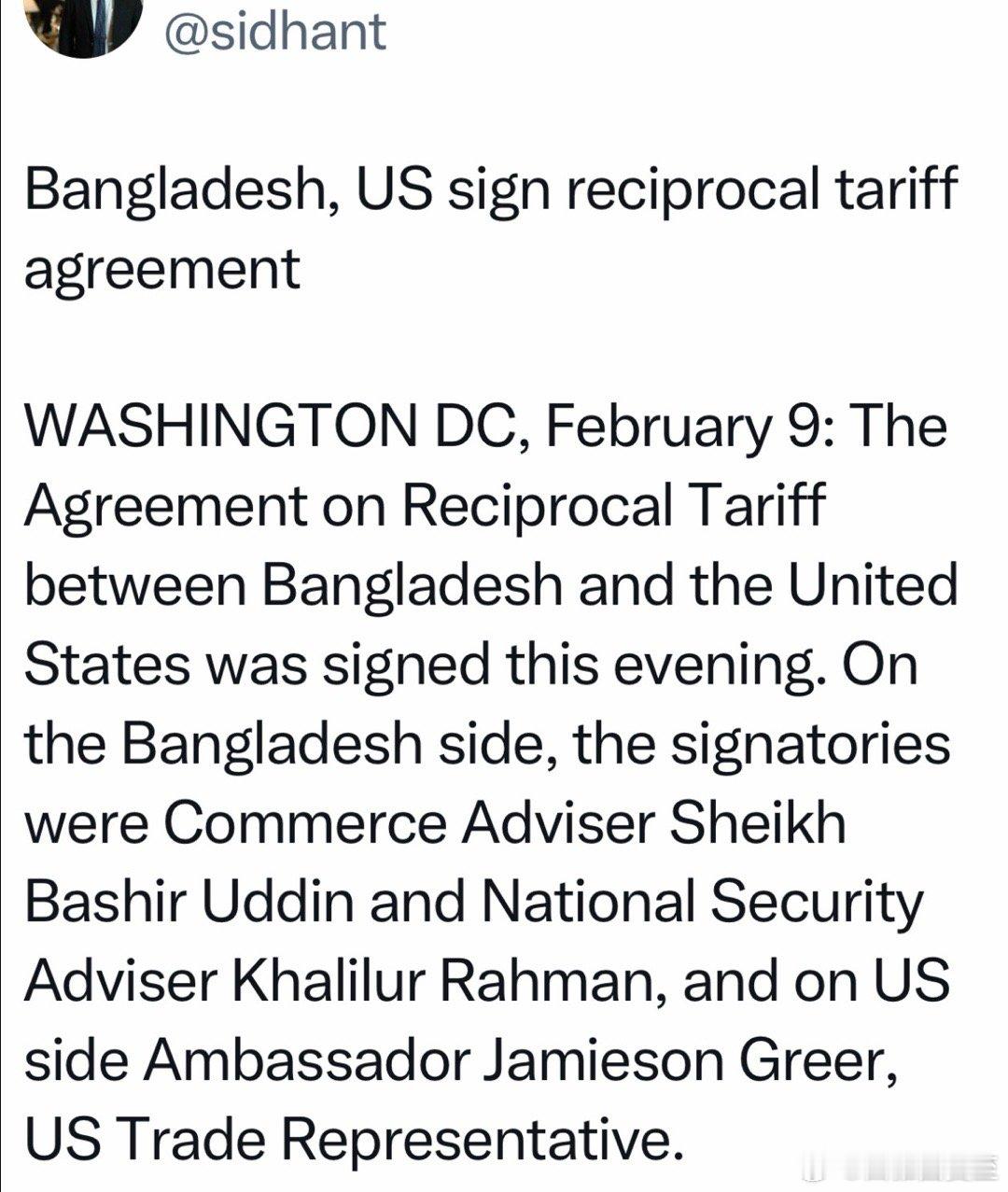 孟加拉与美国签贸易协议:关税19%