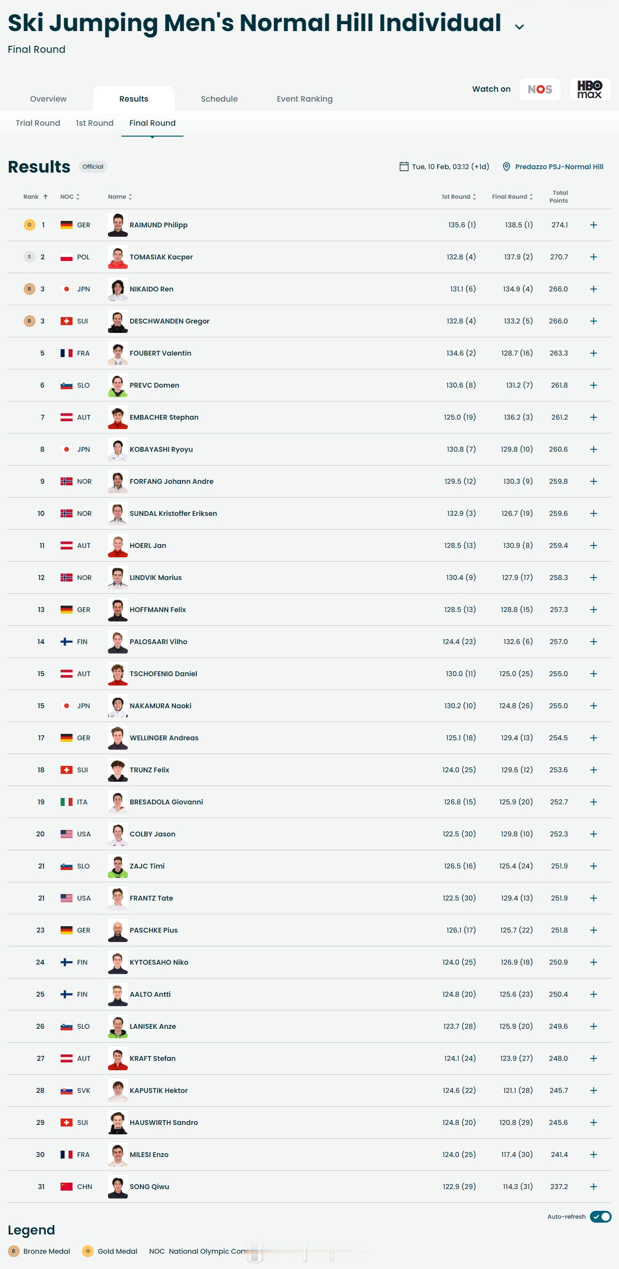 【冬奥跳台滑雪男子个人标准台德国夺冠】冬奥会 2月9日,冬奥会跳台滑雪男子标准台个人比赛结束。德国莱蒙德以274.1分夺得金牌,波兰托马西亚克获得银牌,日本二阶堂莲和瑞士德斯奇万登并列铜牌。中国选手宋祺武取得中国代表团在这一项目的历史最佳战绩第31名。