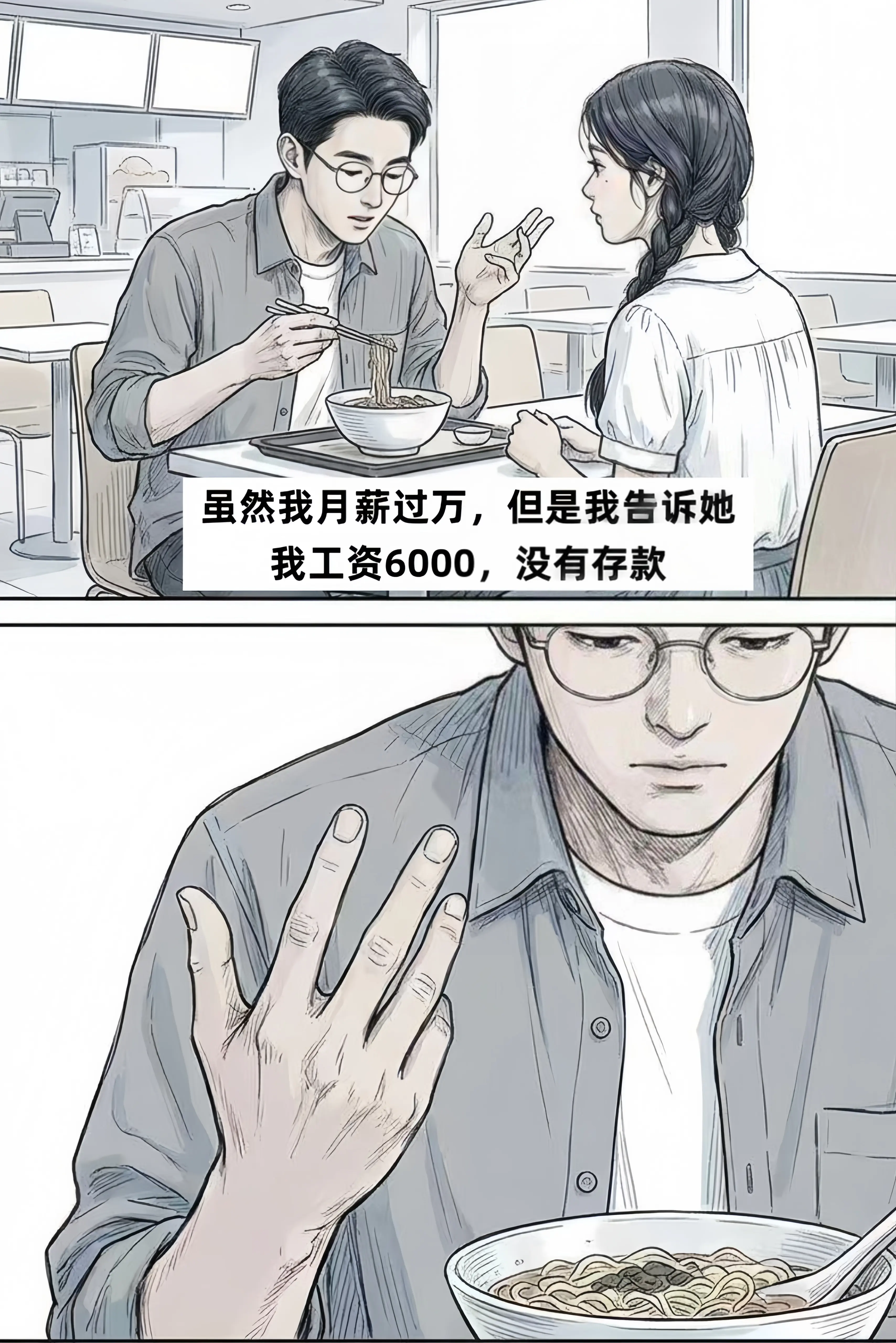 媳妇正在夹菜,朋友疯狂转桌。男子笑脸暴起,下手抓盘,把菜丢妻子碗里。妻子身上被溅