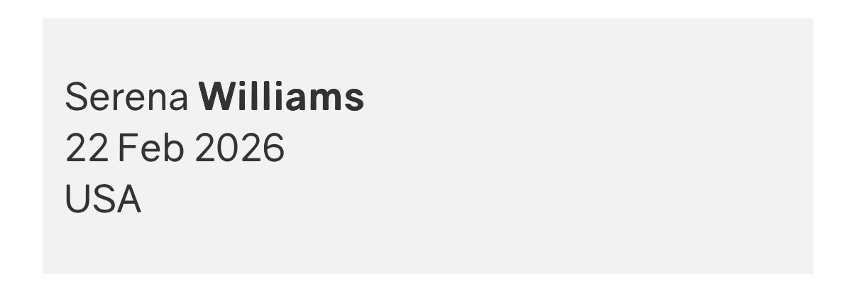 ❗️一则新闻:国际网球诚信机构ITIA更新复赛名单,小威廉姆斯重新加入反兴奋剂检测系统的6个月考查期限将于2月22日结束。也就意味着小威可以在13天后有资格重返WTA巡回赛(如果她愿意)。